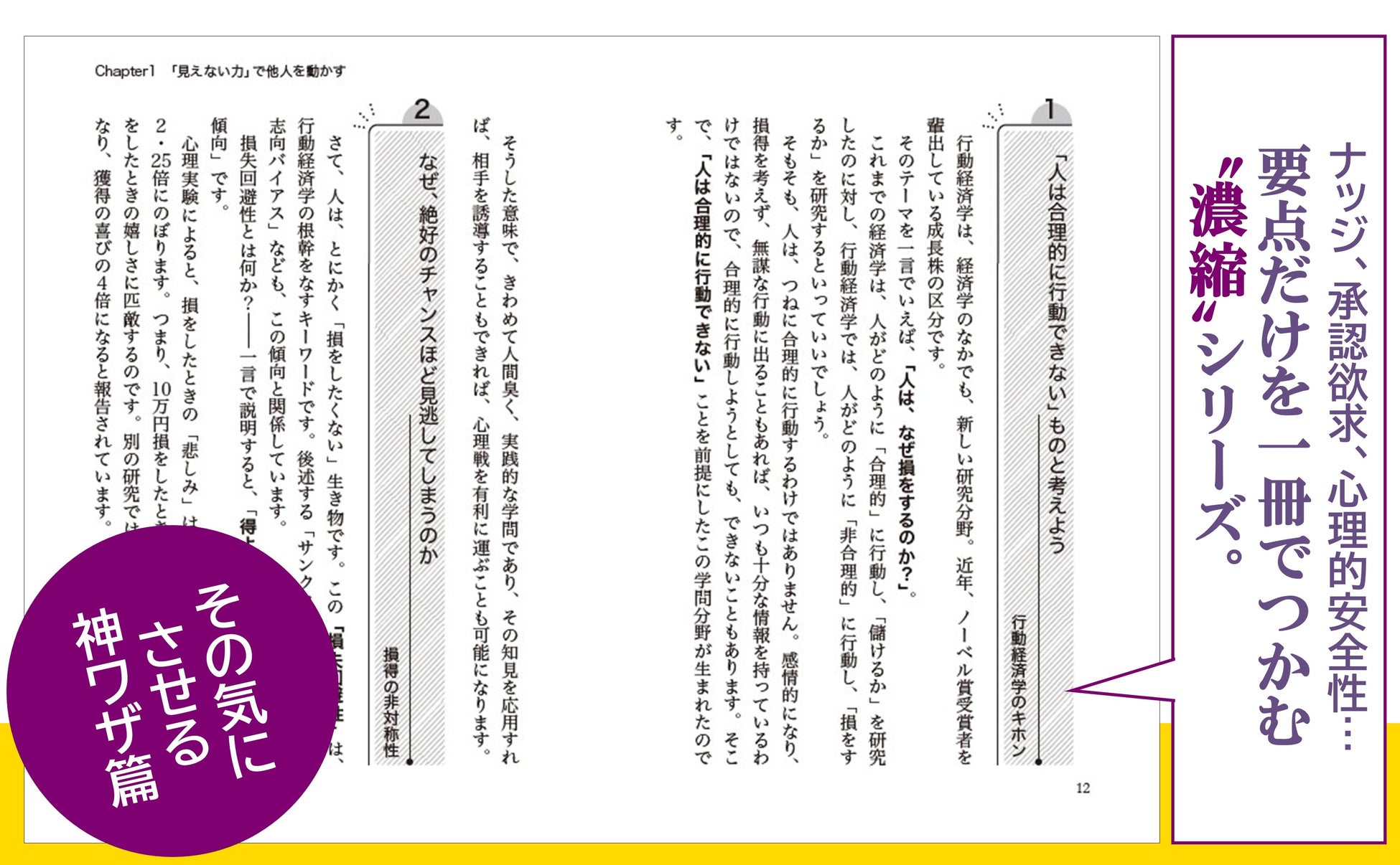 本書は、100ページあまりというコンパクトな紙数の中に、行動経済学、社会心理学、心理的安全性など盛り沢山な内容を詰めこみました。