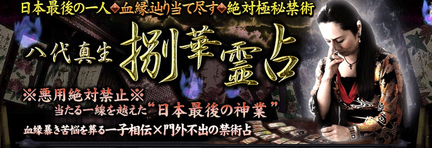 本鑑定は、占術を司る家系に生まれ、生来の高いスピリチュアル能力を持つ鑑定師『八代真生』による、一子相伝秘儀の花札占術と命理学のベースを融合させ体現した独自の鑑定法「捌華霊占(はちはなれいせん)」によって展開されます。あなたという人間にまつわる家系の縁と魂の記憶、そしてあなたの過去、現在、未来に繋がる因縁を極限まで暴きながら、今囚われている悩みの根源や、心の不浄を浮き彫りにし、問題解決への道を開きます。