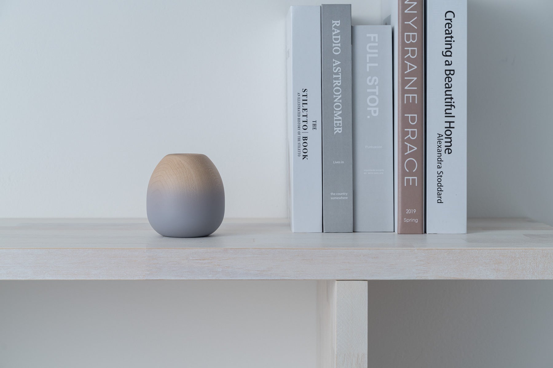 五感で緑を楽しむアロマディフューザー。植物ベースのアロマオイルを使用することで、気軽に緑の気配を感じることができるアイテムです。コロンとした柔らかなフォルムと淡い色の繊細なグラデーションが、可愛らしく空間を彩ります。美しくなめらかに仕上げられた手触りと有機的な形は、ただ触っているだけでも不思議と心が落ち着きます。リビングや玄関など、パブリックな空間で香りを楽しむのに最適なサイズです。