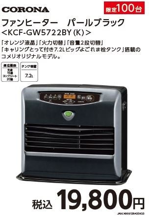 ・「オレンジ液晶」「火力切替」「音量2段切替」「キャリングとって付き7.2Lビッグよごれま栓タンク」搭載のコメリオリジナルモデル