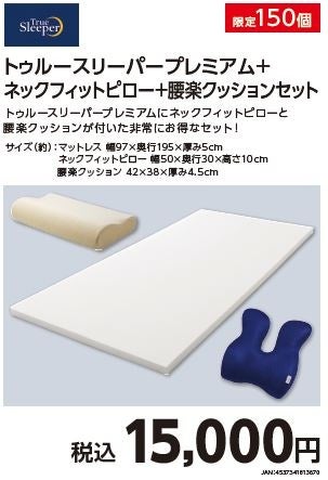 商品名: トゥルースリーパープレミアム+ネックフィットピロー+腰楽クッションセット