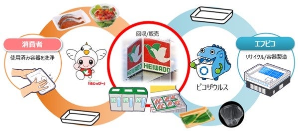 株式会社エフピコ(代表取締役会長:佐藤 守正、以下「エフピコ」)は株式会社平和堂(代表取締役社長執行役員CEO:平松正嗣、以下「平和堂」)と協働し、平和堂全165店舗を対象に、店頭で回収された使用済み食品トレーを新たな食品トレーに生まれ変わらせる「トレーtoトレー」を行い、再び店頭で積極的に「エコトレー」「エコAPET」を使用する「ストアtoストア」の水平リサイクルを促進するための協働を強化いたします。