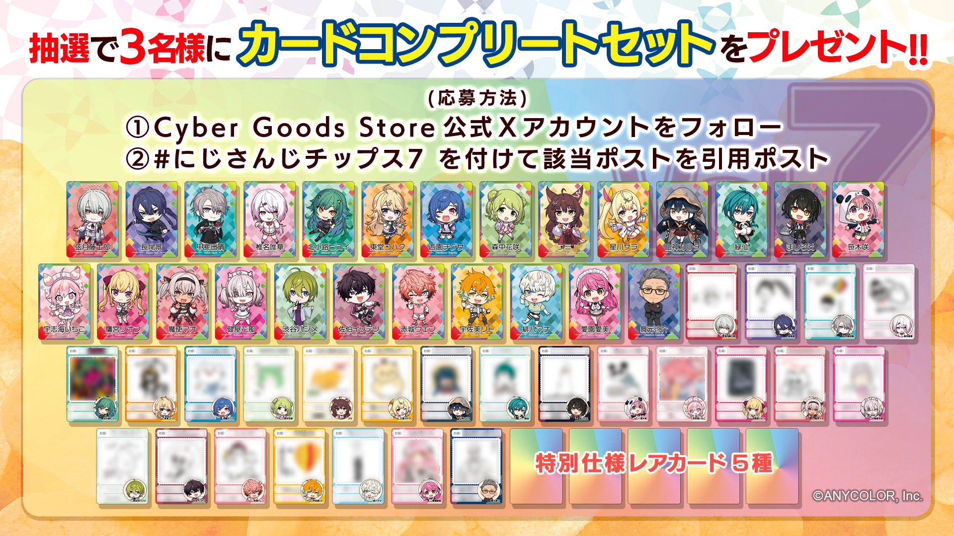 株式会社サイバーエージェント(本社:東京都渋谷区、代表取締役:藤田晋、東証プライム市場:証券コード4751)は、人気VTuberグループ「にじさんじ」より、全55種類のオリジナルカードのうち1枚がおまけとして付いた「にじさんじチップスVol.7 うすしお味」の発売を決定いたしました。2025年3月18日(火)より、全国のファミリーマート店舗、ヴィレッジヴァンガード、アニメイト、Cyber Goods Storeにて販売するほか、株式会社バンダイナムコアミューズメントが運営する全国の直営アミューズメント施設「ナムコ」と「ナムコオンラインクレーン」では限定BOX仕様で順次展開いたします。また、発売決定を記念して、カードコンプリートセットが抽選で3名様に当たる、プレゼントキャンペーンを実施いたします。