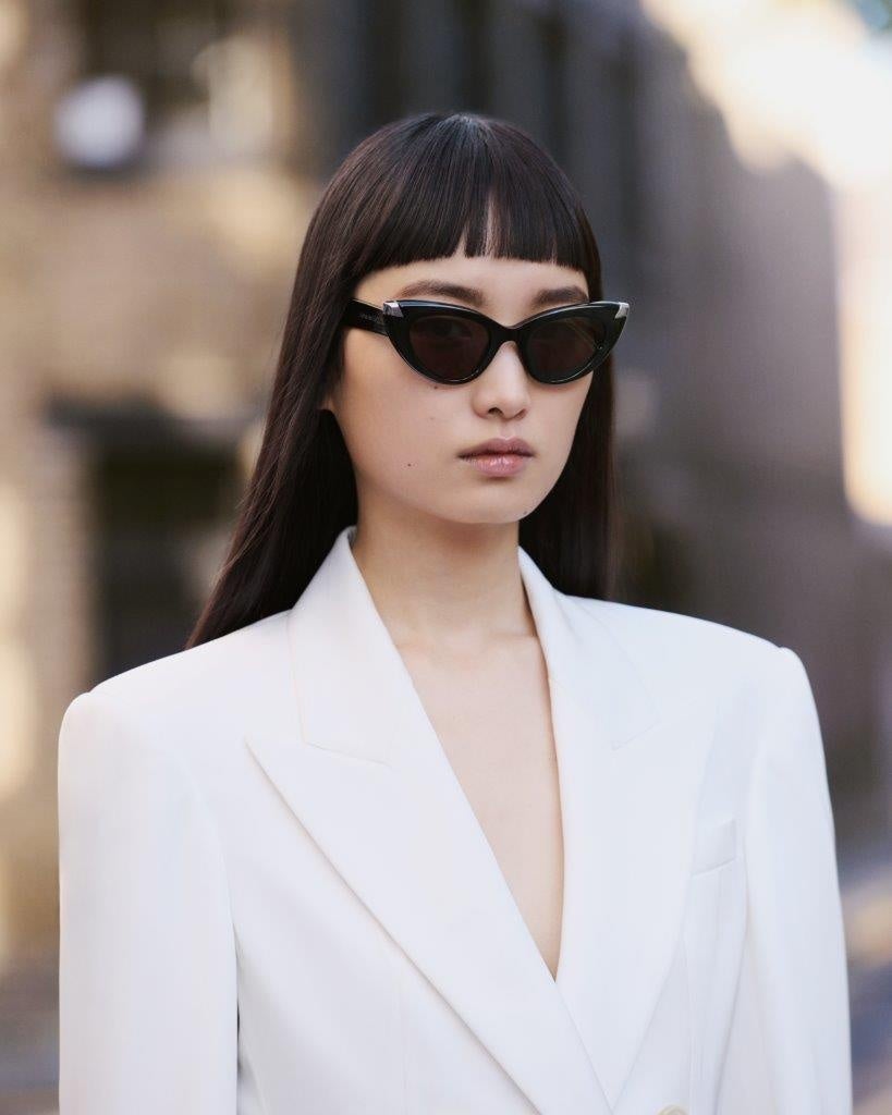 ウィメンズには、細長いパンクなリベットをあしらったキャットアイサングラスとジオメトリックシェイプの2種類が登場。それぞれブラック、アイボリーとブラウンの3色展開です。