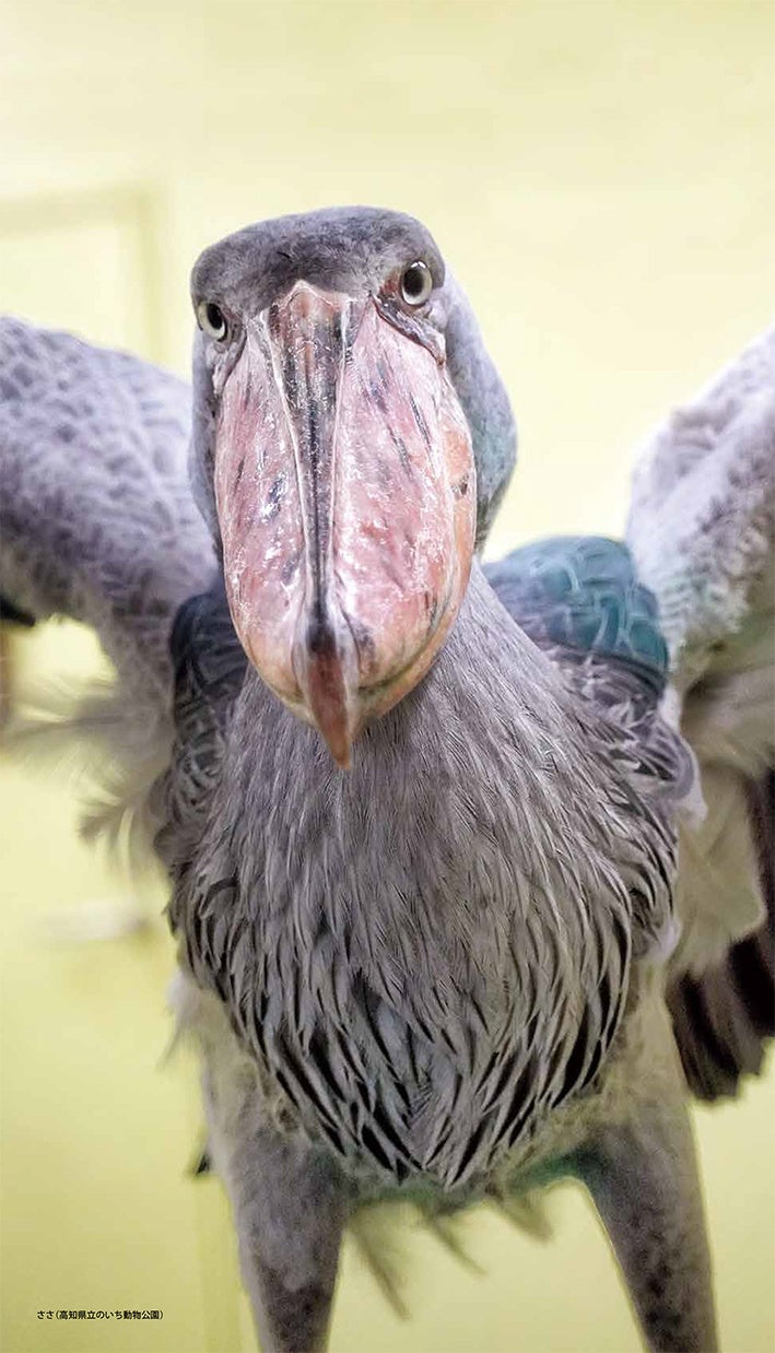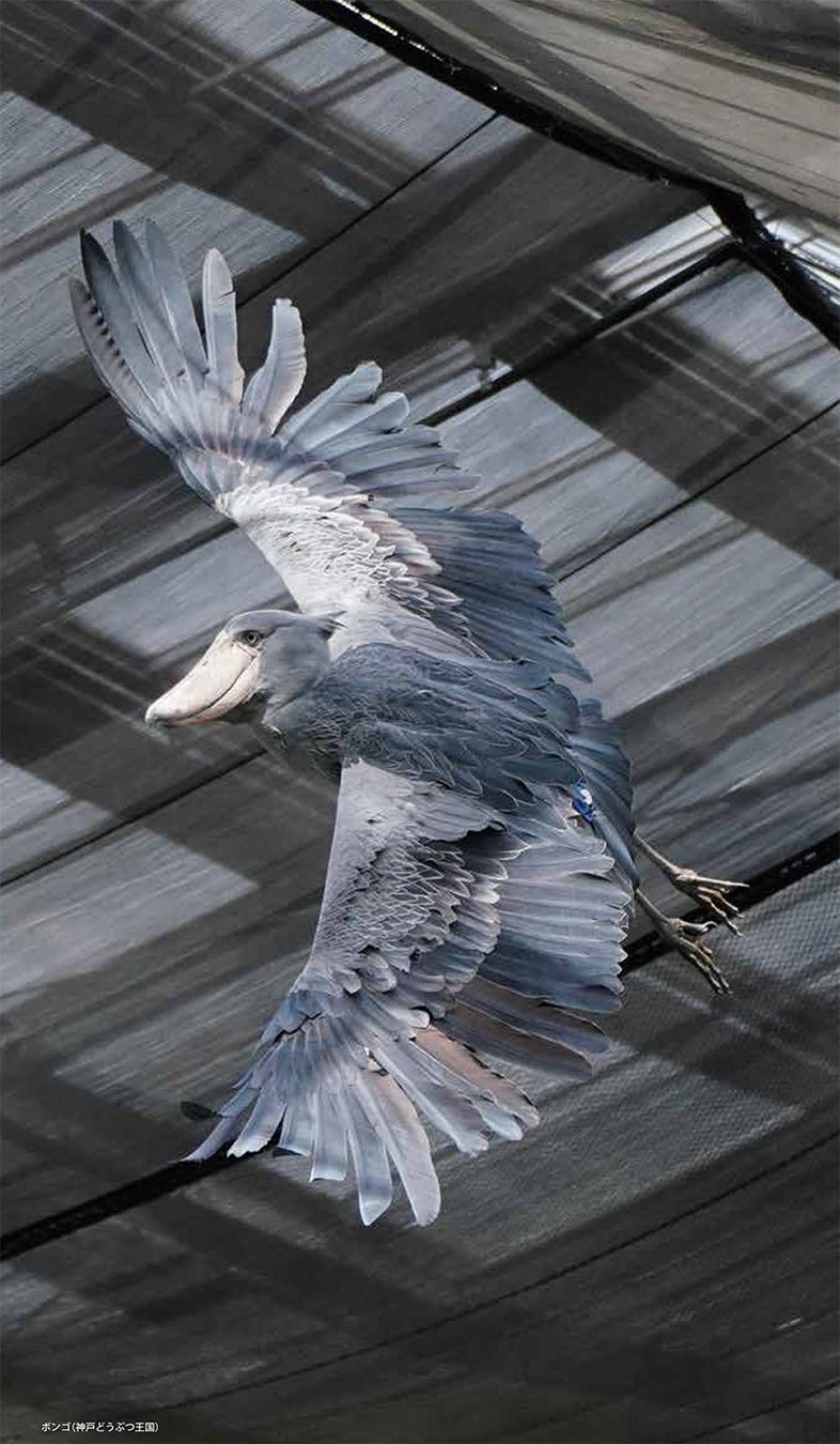 ハシビロコウは、アフリカ大陸東部から中部の湿地帯に棲息する鳥で、ペリカン目ハシビロコウ科ハシビロコウ属に分類されます。エサとなる魚を待ち伏せて狩りをするため、数時間動きを止めることもあり、「動かない鳥」として知られます。日本では掛川花鳥園(静岡県)や千葉市動物公園(千葉県)、神戸どうぶつ王国(兵庫県)、上野動物園(東京都)、高知県立のいち動物公園(高知県)、松江フォーゲルパーク(島根県)で飼育されています。
