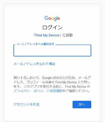 Step 2:ロック解除ができなくなるスマホに登録していたGoogleアカウントとパスコードを入力してログインします。