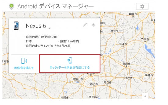 Step 3:ロックを解除したいスマホを選択して、「ロック/データ消去を有効にする」をクリック。デバイスが初期化され、画面のロックが解除される。