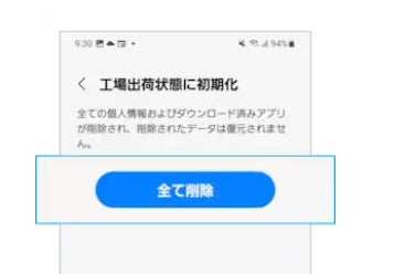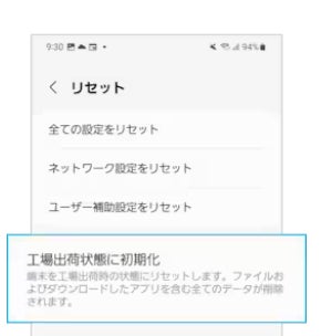 Step4:表示される内容を確認後「リセット」を押し、「工場出荷状態に初期化」にて「すべてを削除」を選択して完了です。