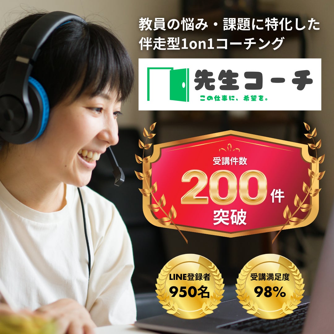 教員の悩み・課題に特化した伴走型1on1コーチング「先生コーチ」の受講件数が200件を突破しました。