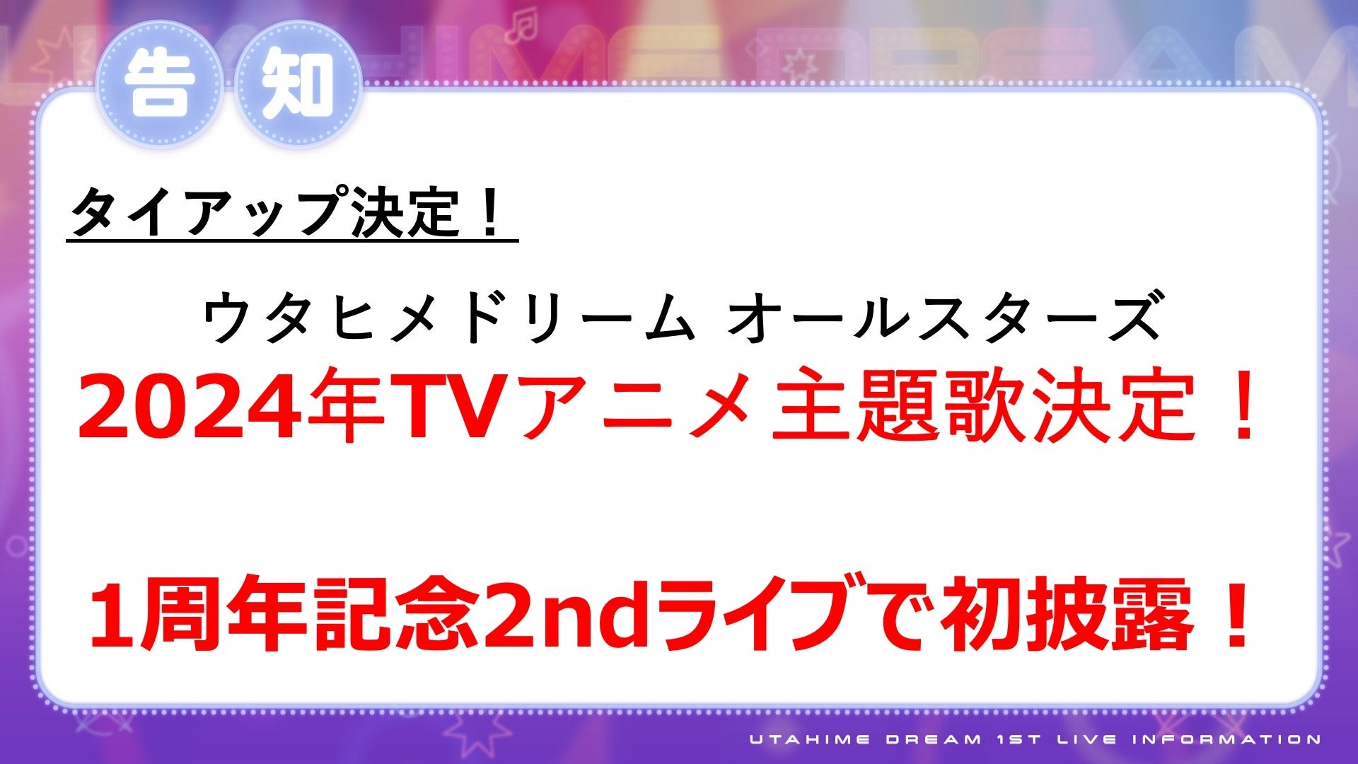 更に、ウタヒメドリーム オールスターズの新曲が2024年放送のTVアニメの主題歌に決定致しました。