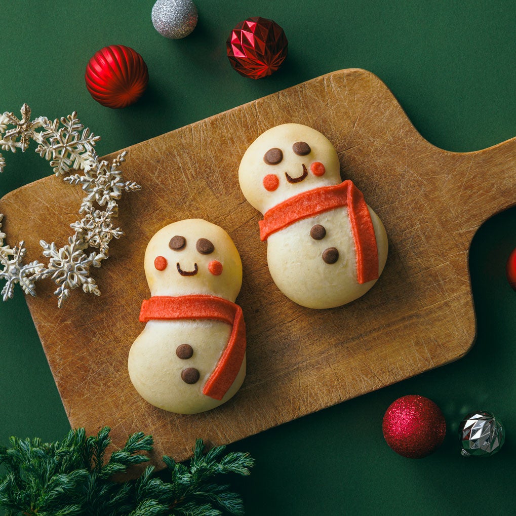 12月はクリスマスを彩るパンが多数登場。にっこり笑顔がかわいいスノーマンは、カスタークリームとチョコクリームの2種類の味が楽しめるスイーツパンです。子供から大人まで楽しめる味わいで心温まる美味しさをお楽しみいただけます。