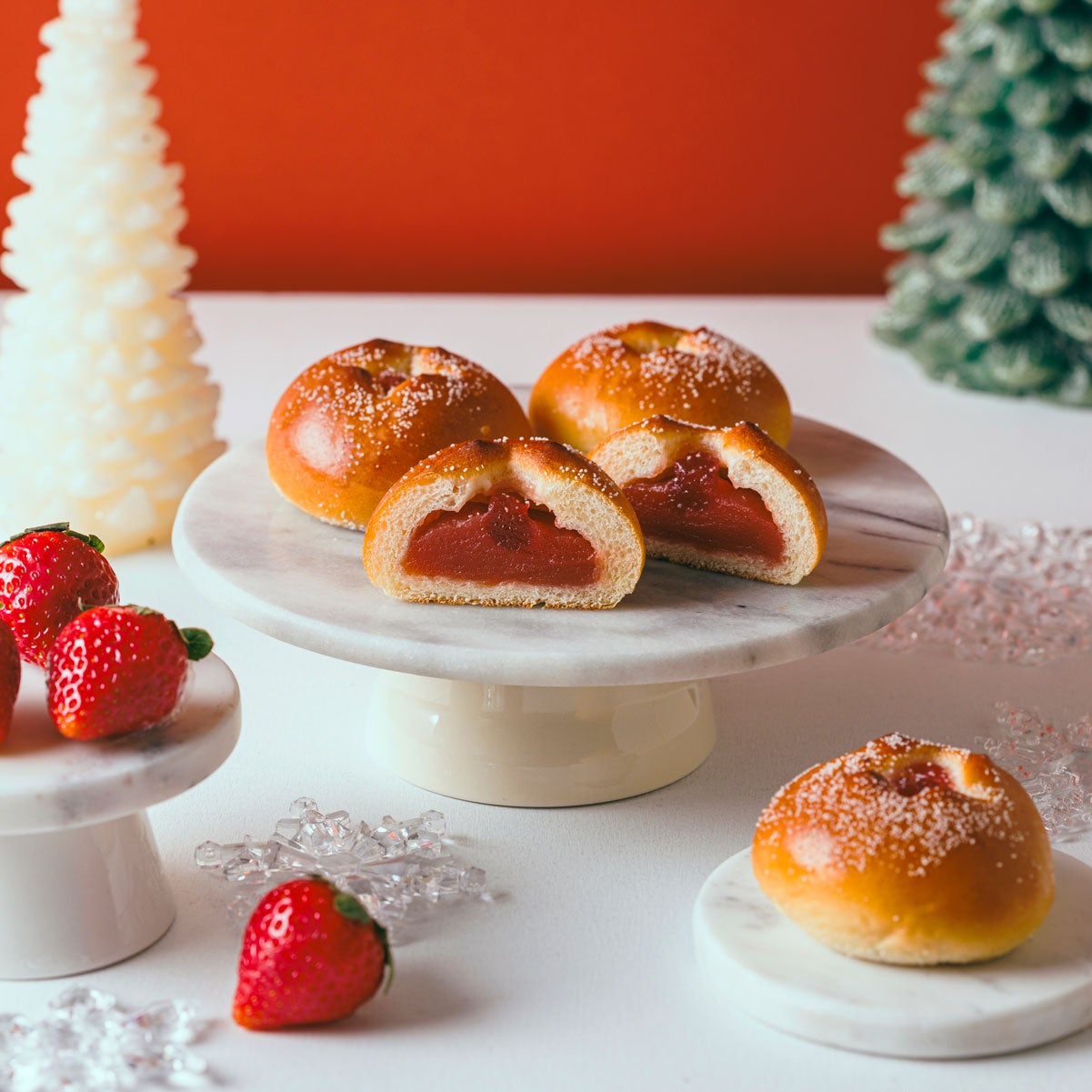 濃厚な甘みのあまおう苺あんを酒種生地で包み、フルーティーなあまおう苺ジャムをトッピングしました。
