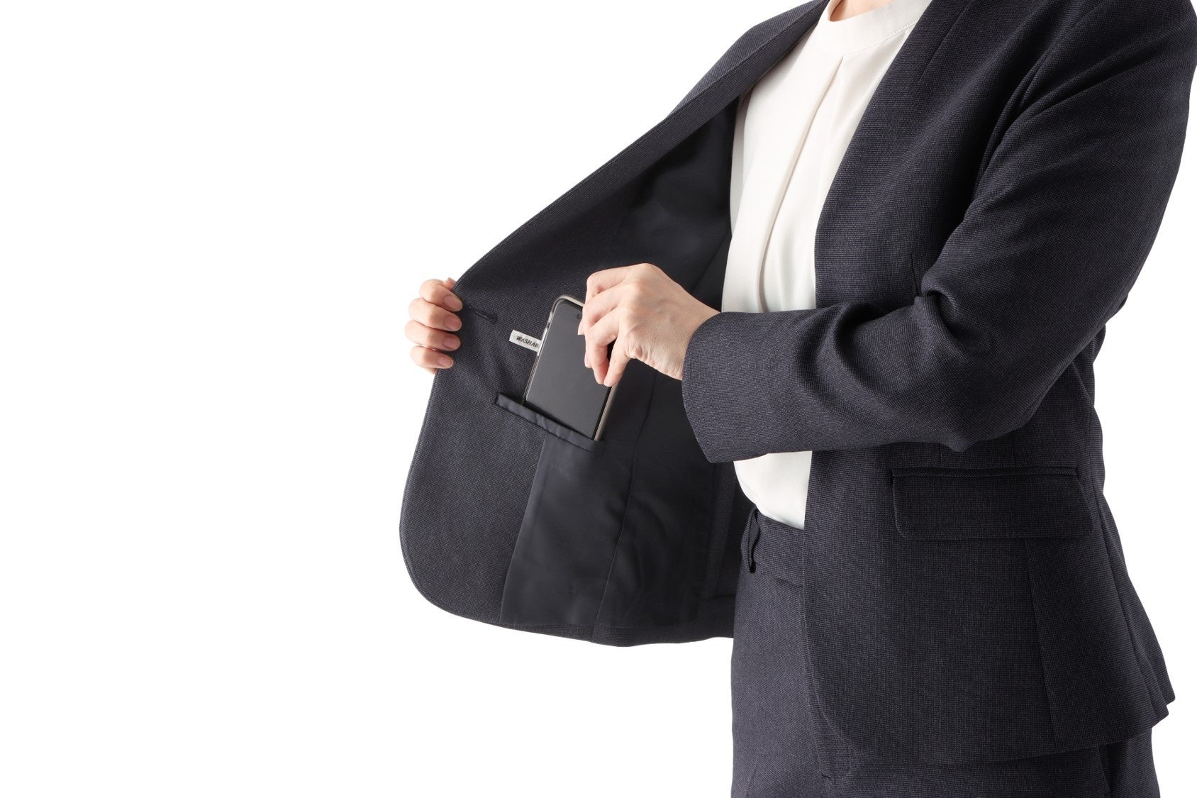 名刺やスマートフォンが入る内ポケットを施すことでよりビジネスシーンで便利なジャケットに。
