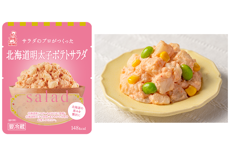 小容量形態のロングライフサラダ「サラダのプロがつくったサラダ」シリーズの新商品として『サラダのプロがつくった 北海道明太子ポテトサラダ』を発売。本日より当社公式通販サイトでも販売を開始しました。