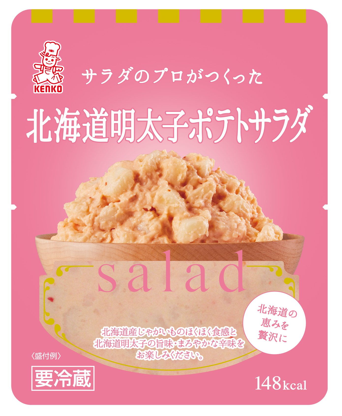ケンコーマヨネーズ株式会社(東京本社:東京都杉並区、代表取締役社長:島本 国一、以下「当社」)は小容量形態のロングライフサラダ「サラダのプロがつくったサラダ」シリーズの新商品として『サラダのプロがつくった 北海道明太子ポテトサラダ』を6月1日(日)より発売しました。本日6月2日(月)より当社公式通販サイトでも販売を開始しています。
