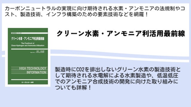 新刊書籍「クリーン水素・アンモニア利活用最前線」を2024年11月29日に発売!カーボンニュートラル達成に向け開発が進む水素・アンモニアの製造・輸送・貯蔵・利活用技術について纏めた一冊!