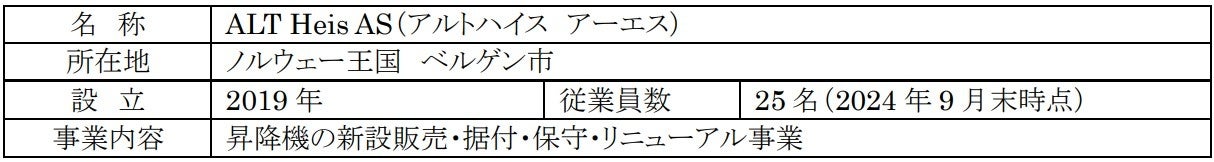 ノルウェー昇降機事業会社 ALT Heis 社を買収