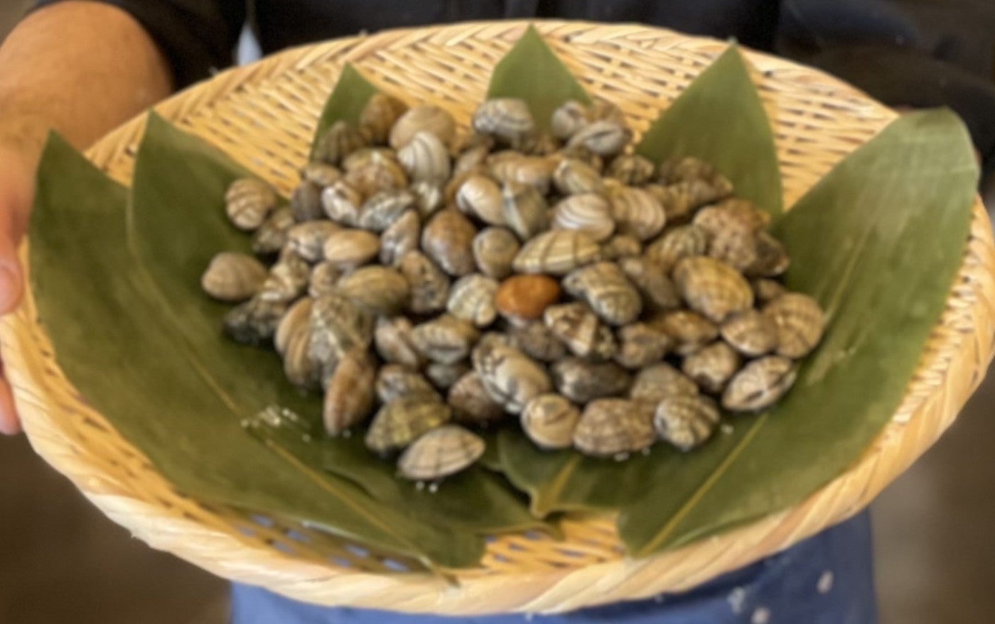 (3) 水産仲卸店舗でアサリなど新鮮で旬の魚介類を販売
