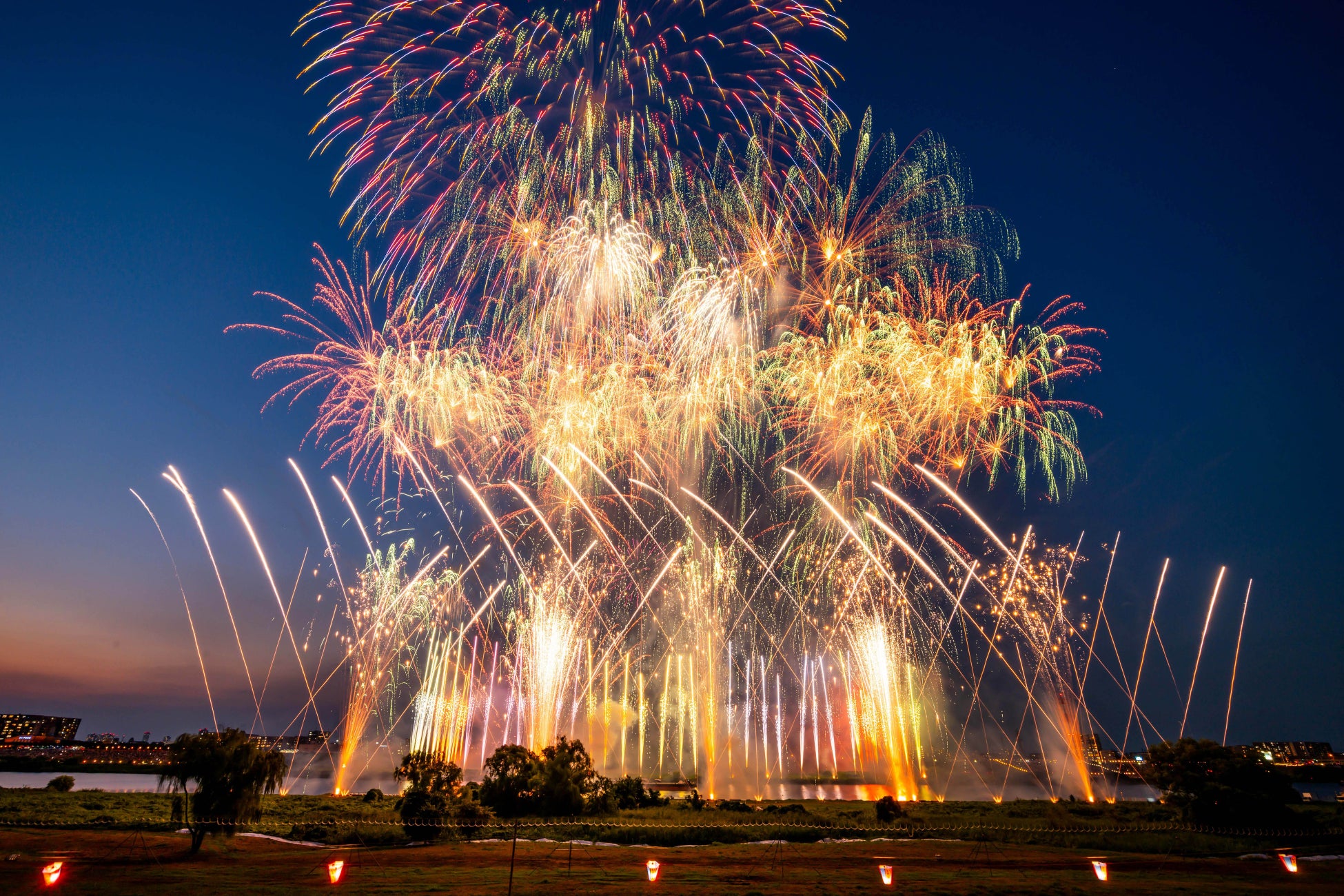 今年も皆さんが安心して花火を楽しむことができる体制で、会場である荒川を挟んで対岸の戸田橋花火大会と同日開催します。昨年同様、大会史上最多の約15,000発(戸田橋花火大会含む)の花火が夜空を美しく彩り、圧巻の迫力と感動を皆さんにお届けします。
