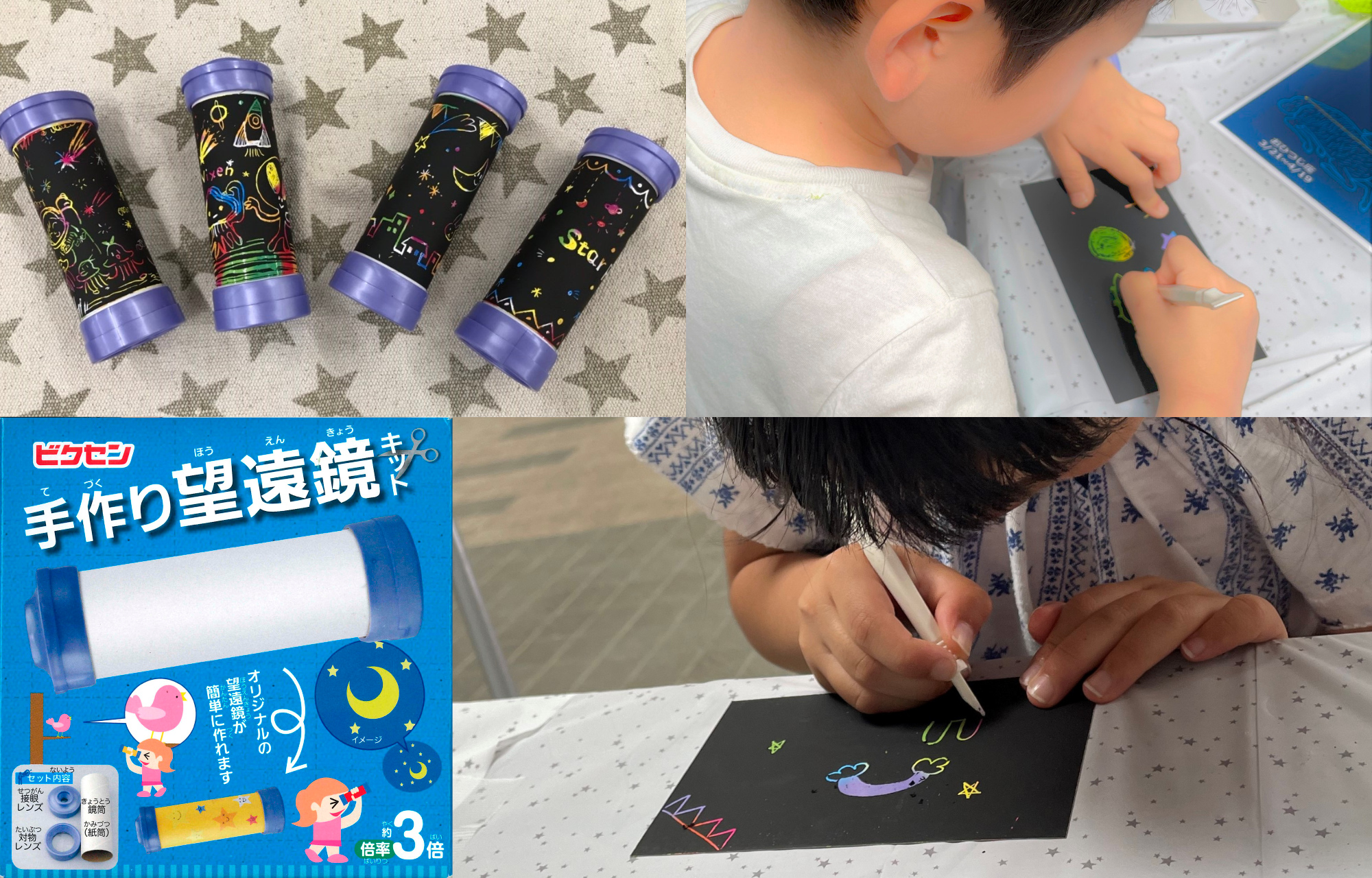 スクラッチシートを削り、自分だけのオリジナル望遠鏡を作る簡単な作業ですので、小さなお子様からお楽しみいただけます。