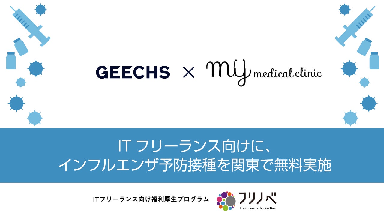 ギークス株式会社(本社:東京都渋谷区、代表取締役CEO:曽根原 稔人、以下ギークス)は、ITフリーランスの健康管理サポートを目的に、インフルエンザ予防接種を無料で実施することをお知らせします。今後もITフリーランス向け福利厚生プログラム「フリノベ」のサービス拡充などを通じ、ITフリーランスの方が安心して長く働ける環境構築を目指し、その活躍を後押ししていきます。