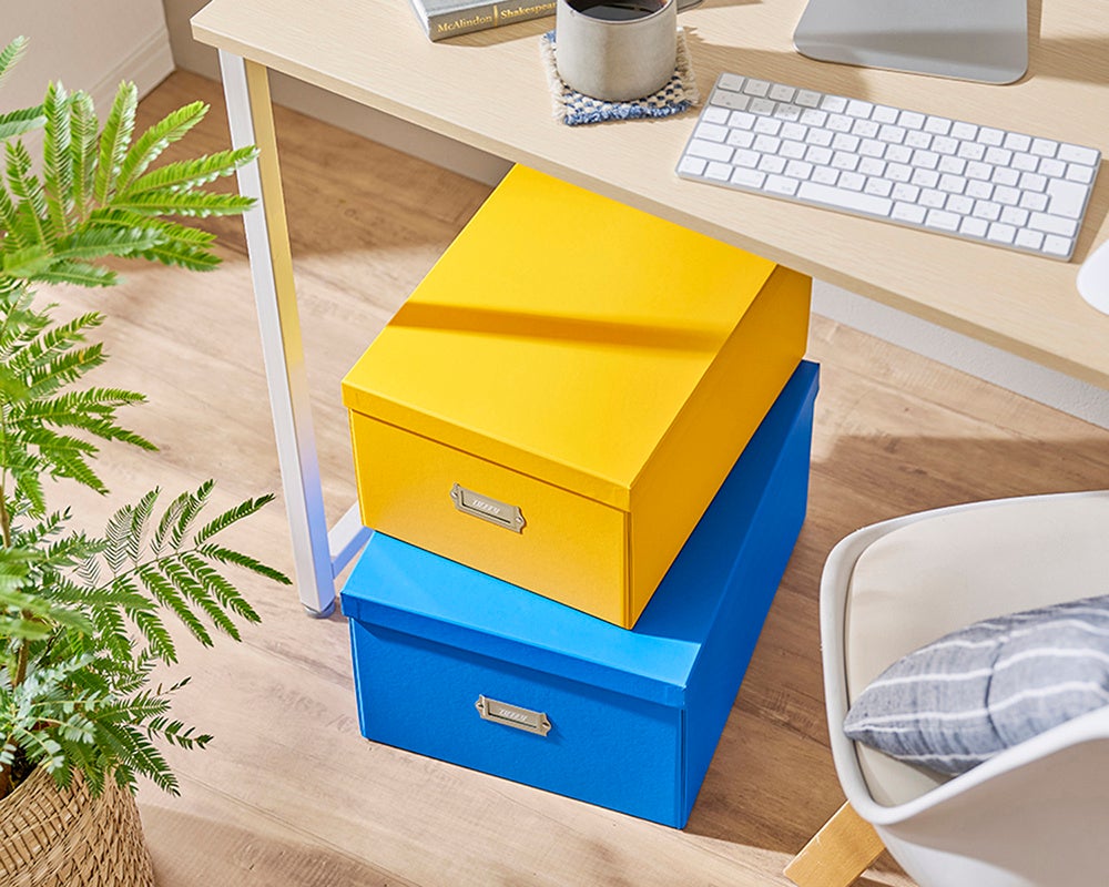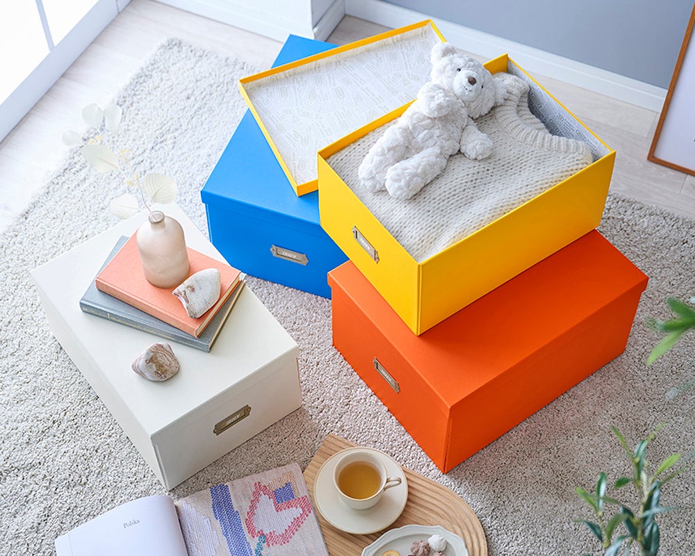 ~インテリアにもなる、鮮やかなカラーリングの折りたたみ可能な紙製収納ボックス~