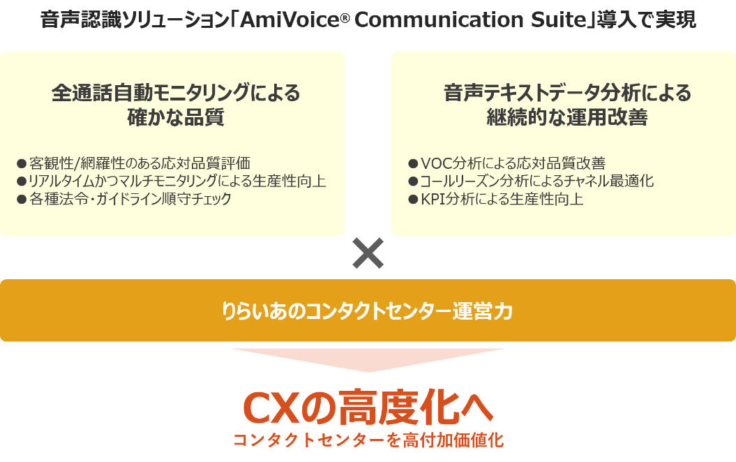 りらいあコミュニケーションズ、コンタクトセンターの高付加価値化に向けAI音声認識ソリューション「AmiVoice® Communication Suite」の本格導入を開始
