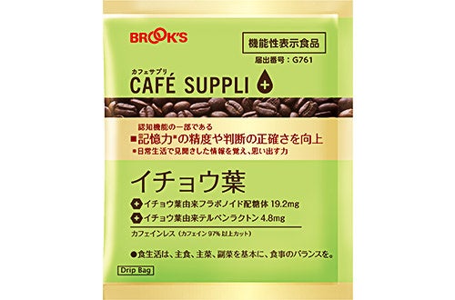 コーヒー・茶類等の通信販売事業を行う株式会社ブルックス(本社:神奈川県横浜市)代表取締役社長:小川裕子は、CAFÉ SUPPLIシリーズより、記憶力※の精度や判断の正確さを向上させるイチョウ葉エキスを配合したドリップバッグコーヒー、機能性表示食品「カフェサプリ イチョウ葉」を2021年12月28日(火)より販売いたします。