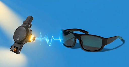 e-クロミック・グラス:車両の雨量・環境光センサーとアイウェアのレンズを同期し、瞬時に調光(ダーク/クリア)が可能