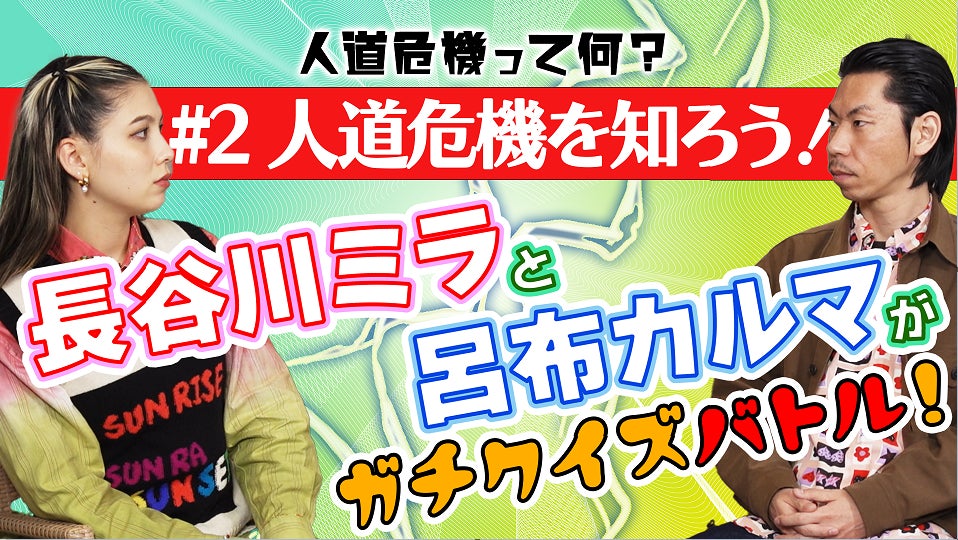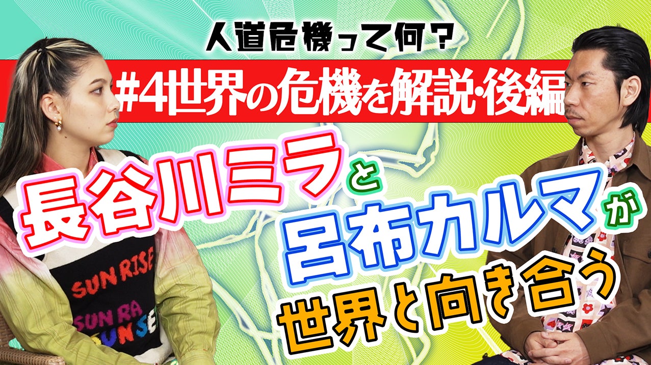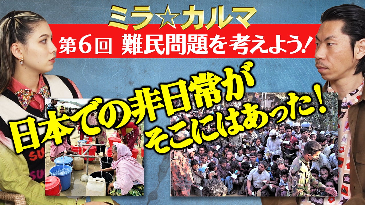 ナビゲーターのモデル長谷川ミラとスペシャルコメンテーターの人気ラッパー呂布カルマがゲストとともに難民問題を真剣に考えます。