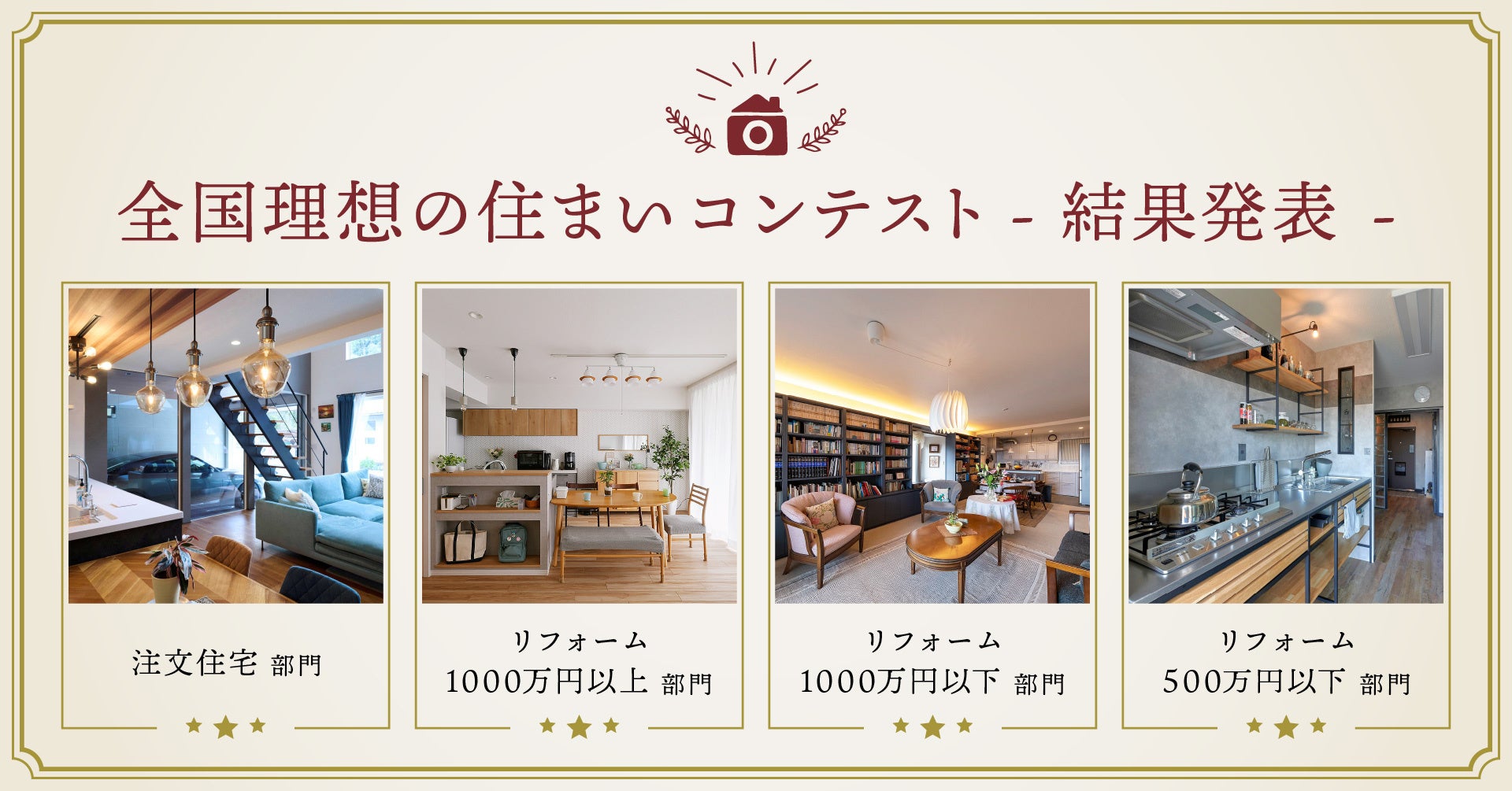 ・部門:注文住宅部門、500万以下リフォーム部門、1000万以下リフォーム部門、1000万以上リフォーム部門