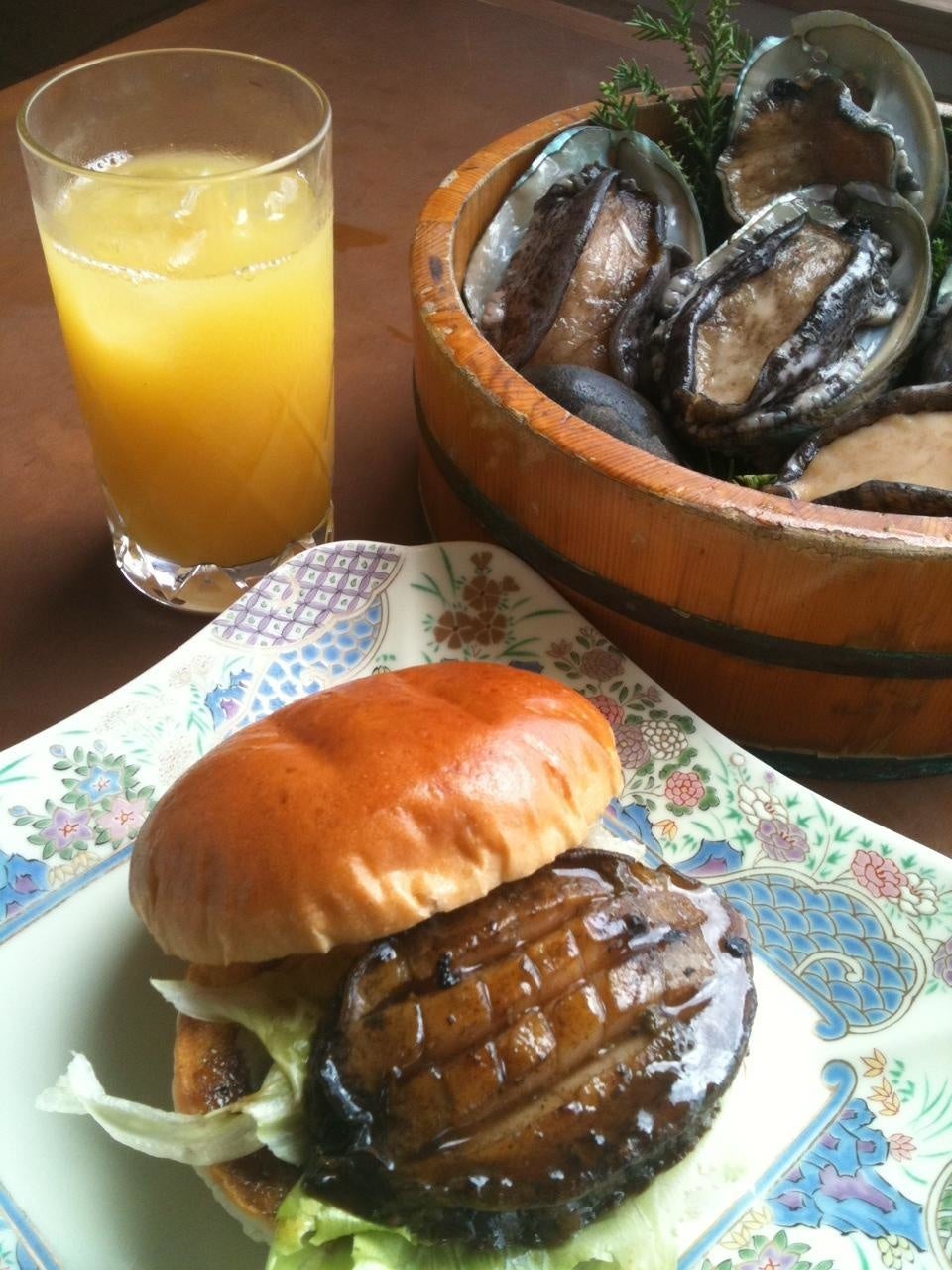 鳥羽市で採れた地元食材をパテに使用することが条件の「とばーがー」。タコやイセエビ、サザエといった海産物を中心に鳥羽市の特産品を使用した様々な味のバーガーが市内の複数の飲食店でいただけます。要予約でいただける「絶品あわびステーキバーガー」は、あわびを贅沢に丸ごとステーキにした見た目の華やかな「とばーがー」です。あわび好きなら一度は頼みたい夢のハンバーガーです。