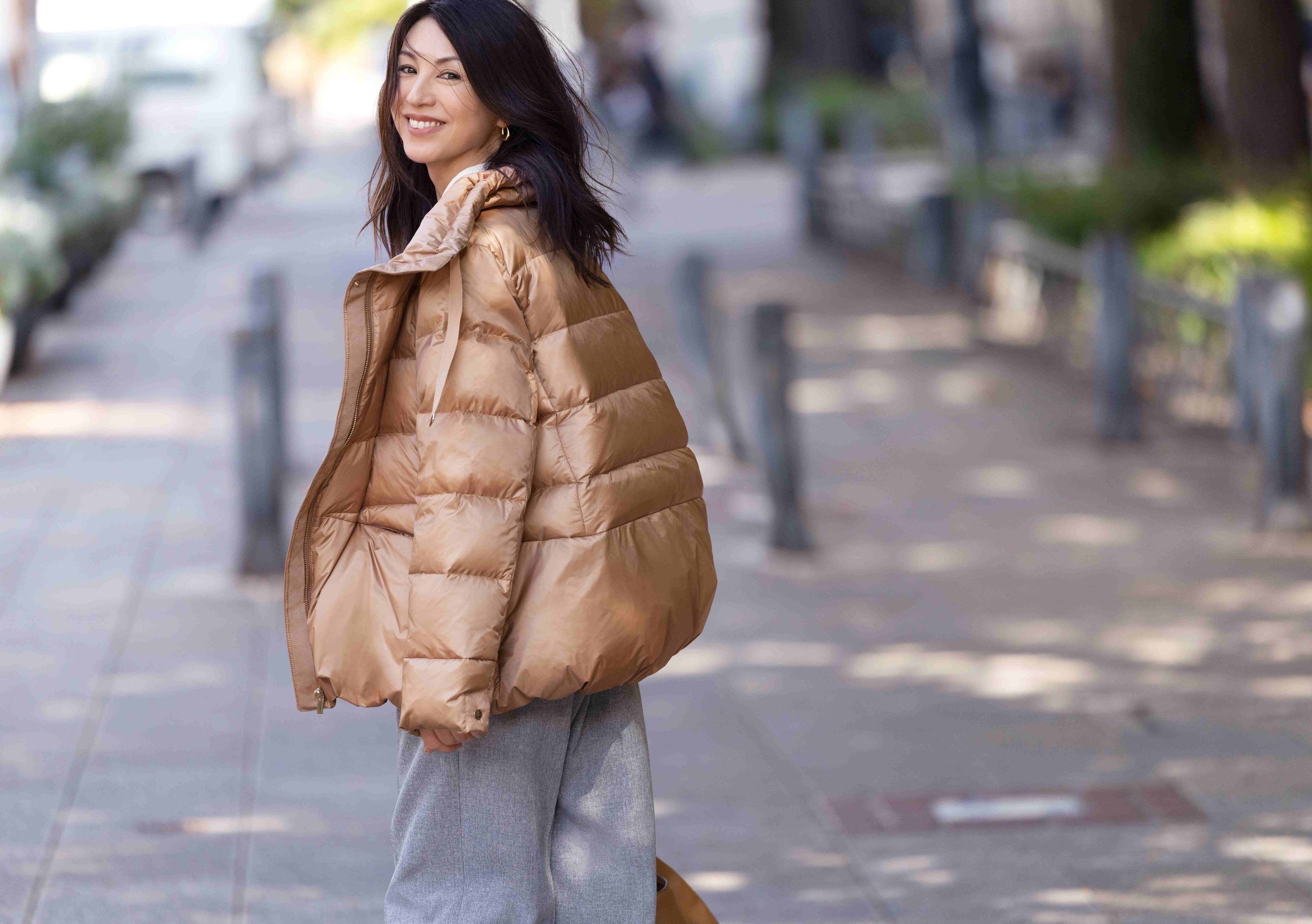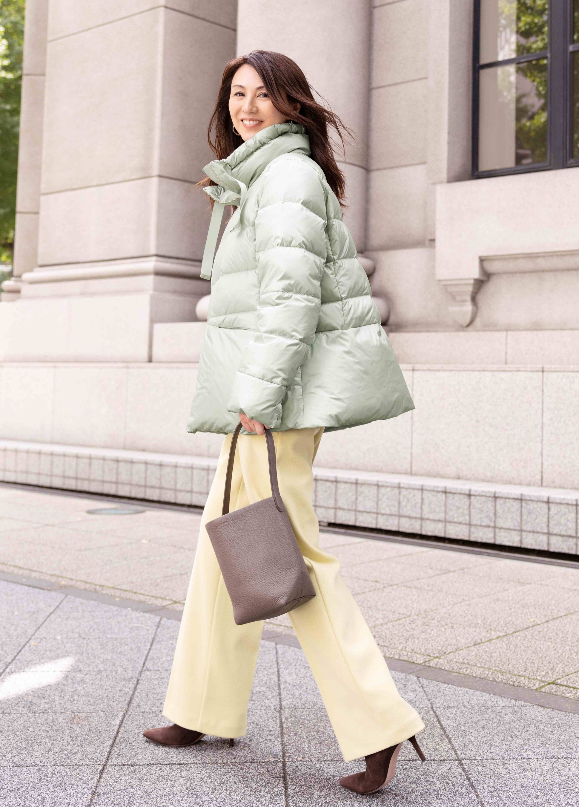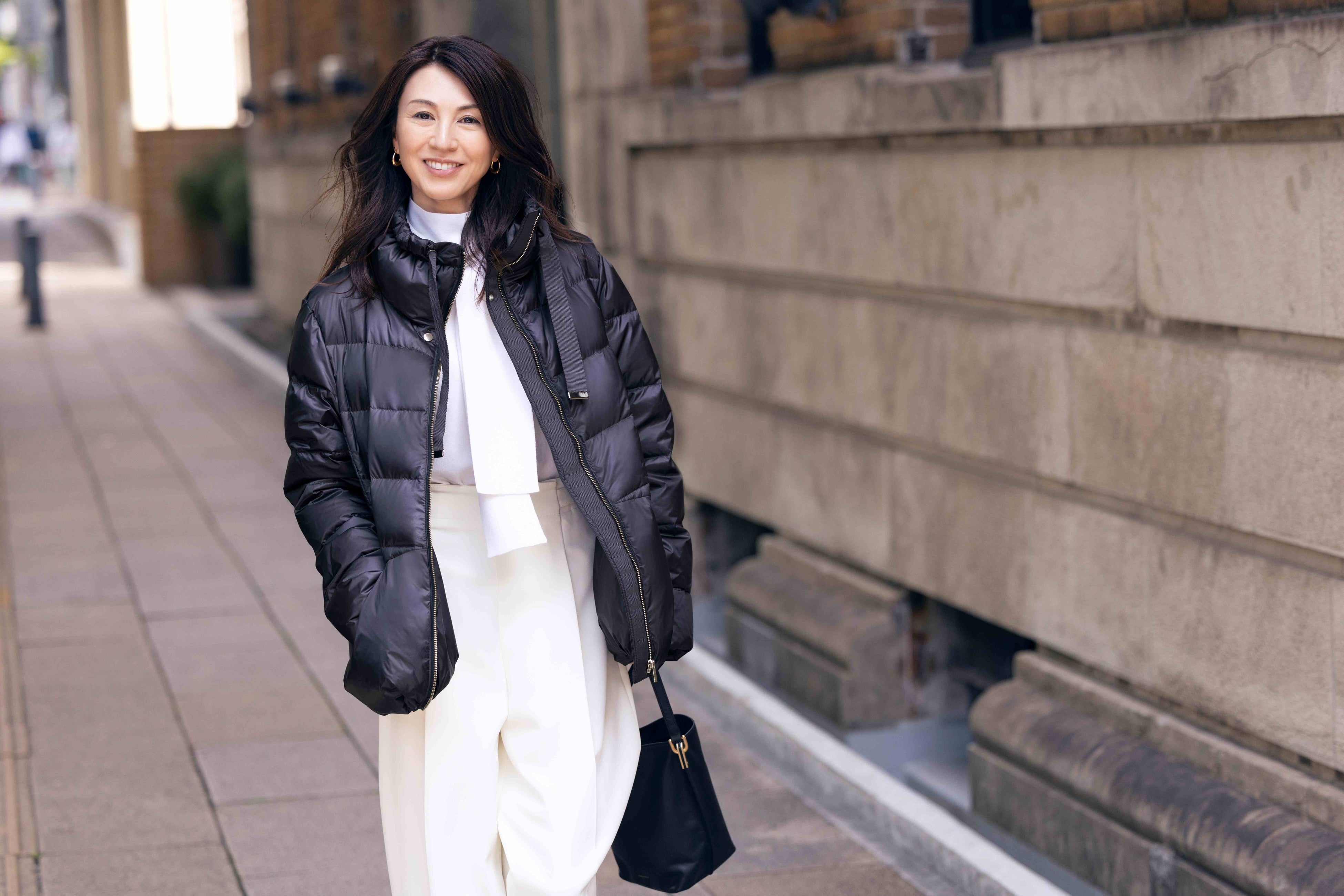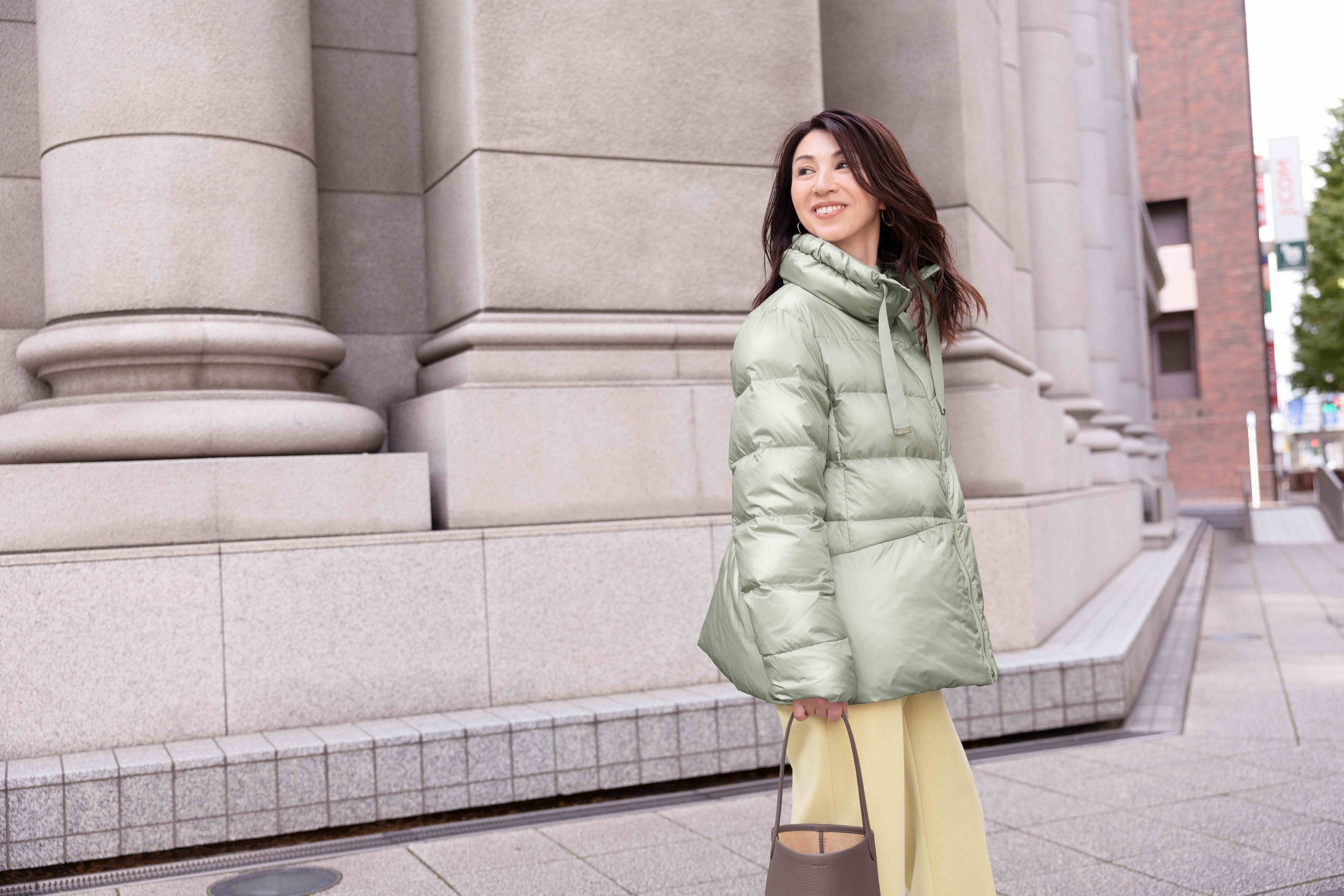 フリーアナウンサー・エッセイスト 雨宮塔子さんが着る、ドゥクラッセの「つやAirダウン」。重さわずか445gの「体感ゼロ」アウターが発売!
