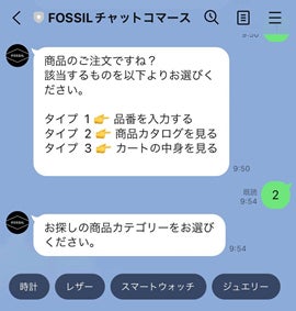 「FOSSIL チャットコマース」には、現在主に3つの機能があります。