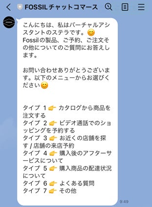 「FOSSIL チャットコマース」LINE公式アカウント機能に関して