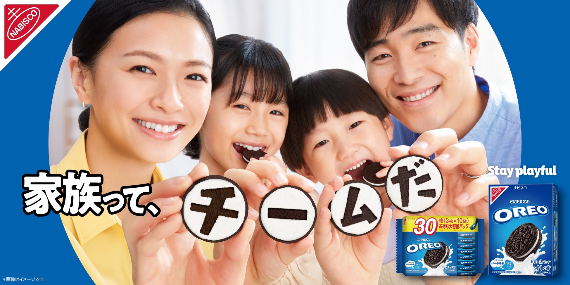 モンデリーズ・ジャパン株式会社(本社:東京都品川区/代表取締役社長:福本千秋)のビスケットブランド「オレオ」は、新しいイメージキャラクターに女優・榮倉奈々さんとお笑い芸人・ジャルジャル後藤淳平さんを起用した新TVCM「家族って、チームだ。」篇を2022年10月3日(月)より放映します。