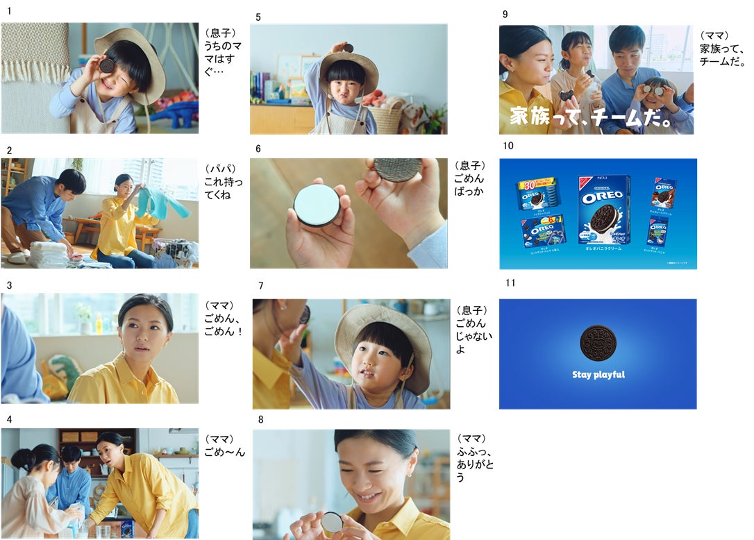 1912年の発売以来100年以上にわたり100を超える国で愛されているロングセラーブランド「オレオ」。2022年の新CMには、新ブランドアンバサダーとして、実生活でも子育て中の女優・榮倉奈々さんと、お笑い芸人・ジャルジャル後藤淳平さんを起用し、「家族って、チームだ。」をテーマに、オレオをきっかけにみんなで助け合うワンチームとしての家族の姿を表現しました。昨今、家族の在り方はより多様化してきています。「親だから完璧でなければいけない」というステレオタイプに縛られず、楽しいことも大変なこともオレオみたいに家族で分けあい、上も下もないチームみたいな家族、そんな新しい家族の絆を表現した新CMです。