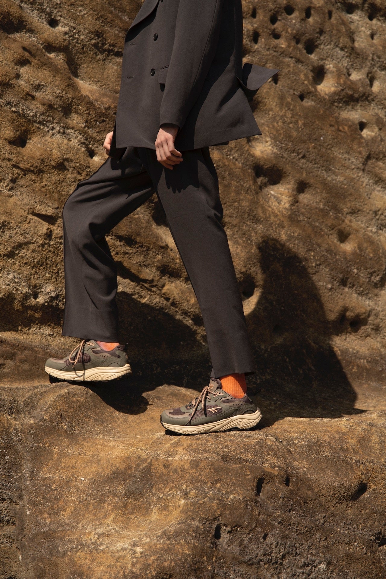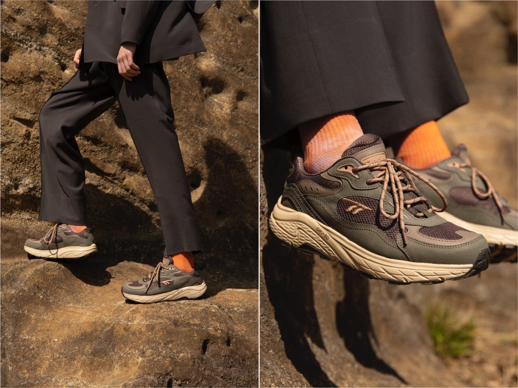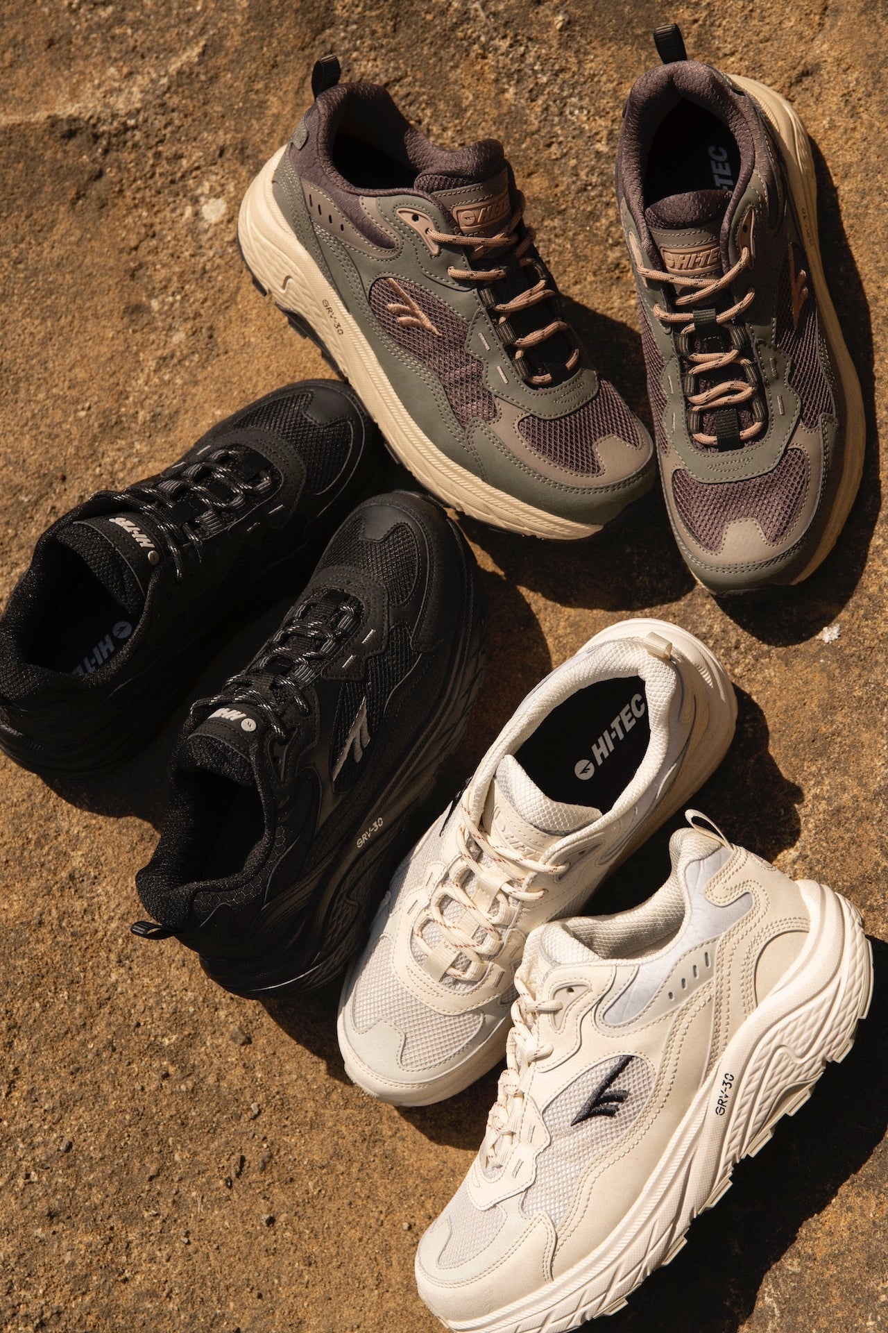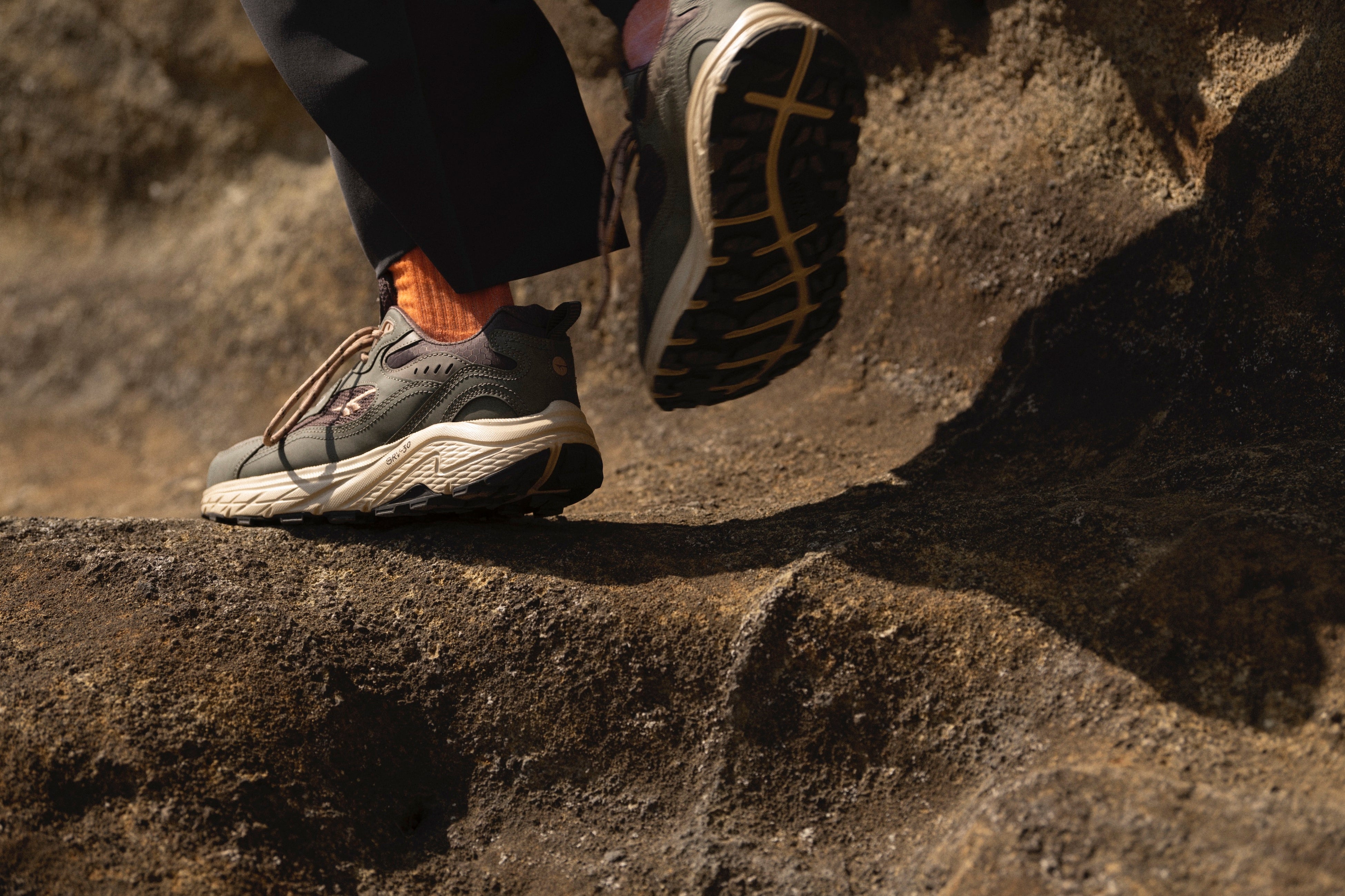 90‘sのアウトドアシューズのディテールを落とし込んだニューヴィンテージな佇まい。アッパーには高グレードの透湿防水メンブレン「ドライハイ ストーム」を搭載。ミッドソールには着地の衝撃を約70% 吸収する「GRV-30」を採用し、快適な履き心地を実現します。