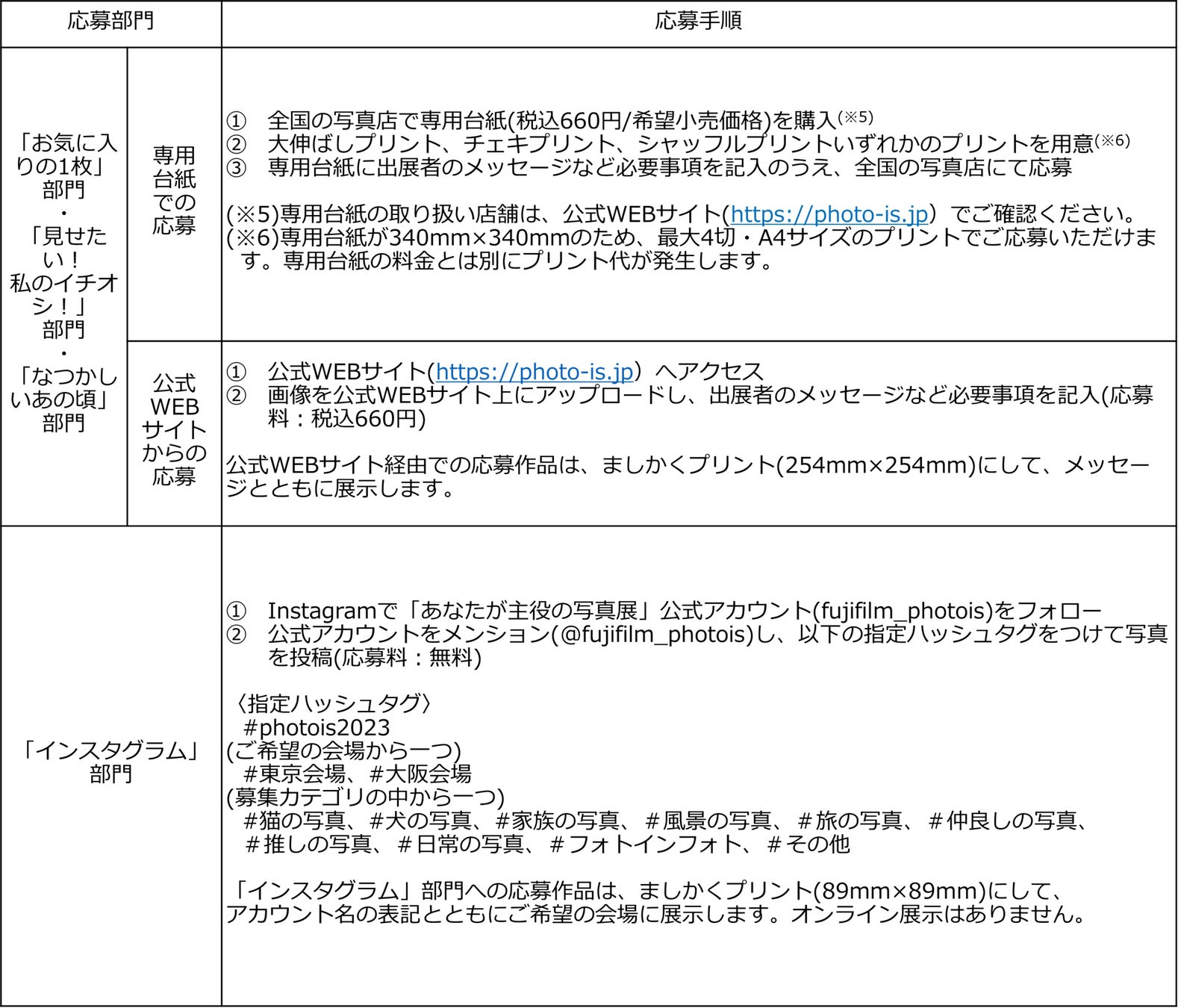 今年は新たに東京会場・大阪会場で、写真家・著名人によるトークショーや、家族・友人と一緒にお楽しみいただける、写真をテーマにしたワークショップ、撮影会などを開催します。さらに、当社のINSTAX“チェキ”やプリント製品などをお試しいただけるコーナーや展示など、終日お楽しみいただける企画を実施します。今後、「“PHOTO IS”想いをつなぐ。あなたが主役の写真展2023」の公式WEBサイト( https://photo-is.jp )で最新情報を随時公開していきます。