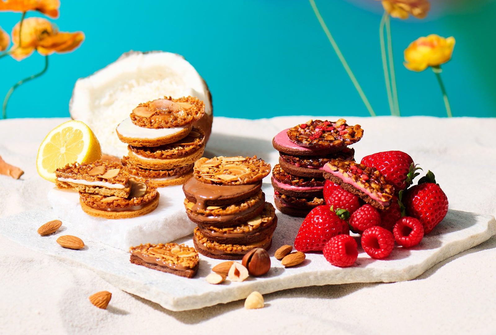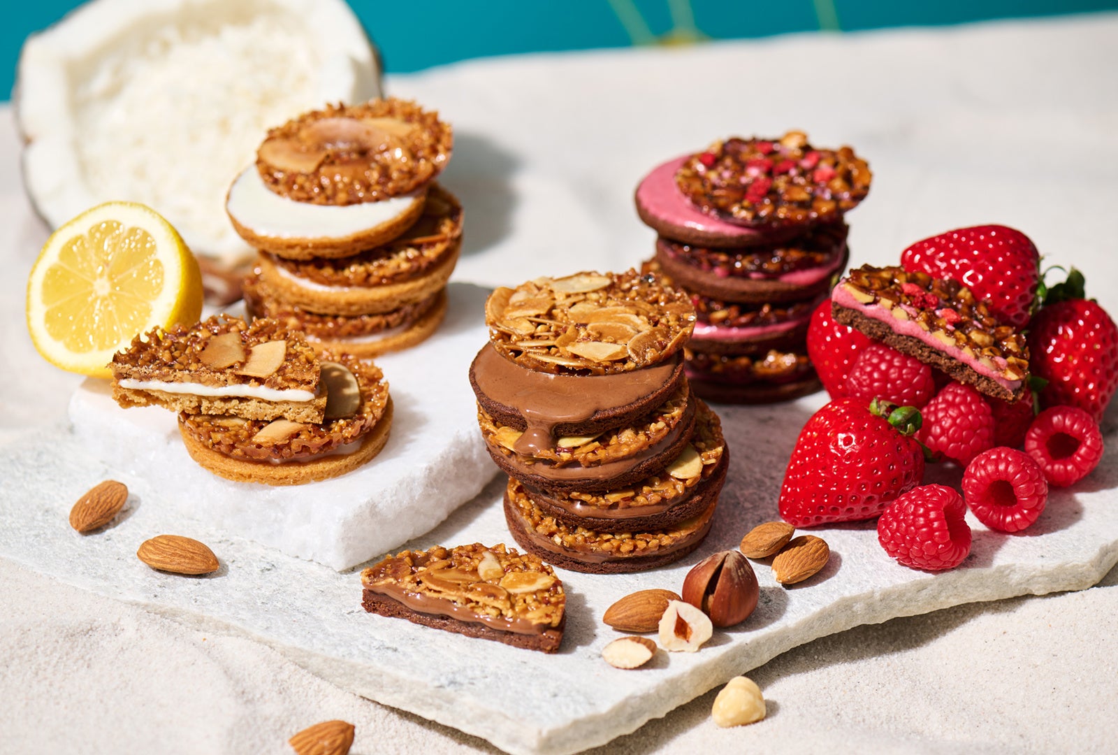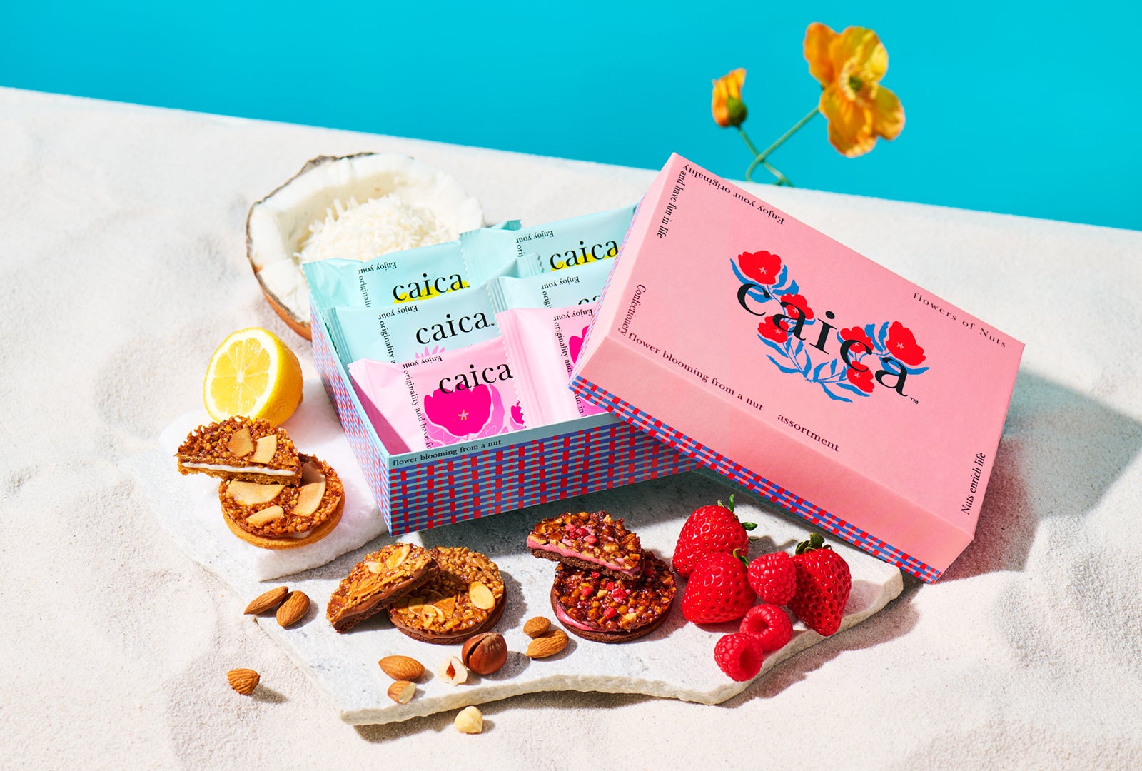 女性を中心に人気を誇るナッツ菓子専門店「caica」から、母の日ギフトが登場。ピンクが基調となったBOXの中には、過去に限定販売した〈ココナッツ〉をはじめ、現在販売する〈オリジナル〉と〈ダブルベリー〉まで、フロランショコラサンド全種を贅沢に詰め込みました。
