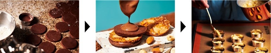 ブラウンシュガーの「カソナード」で焼き上げた、ほろっとほどけるザクホロ食感のシュトロイゼルの上に、ローストヘーゼルナッツのコクとミルクチョコの優しさが溶け合うジャンドゥーヤチョコレートと、香ばしくキャラメリゼしたアーモンドスライスと皮付きアーモンドダイスがザクザクと楽しいチュイルを重ねた3層のフロランタンです。