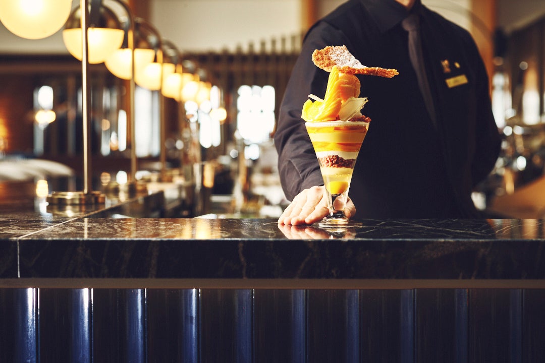 ラテン語でリズムという意味のカフェ&バー「リュトモス」。コンダクターがオーケストラを導くように、エグゼクティブペストリーシェフ 長田がその経験豊かな職人技によって響き合う味わいのハーモニーを生みだす、大好評のストリングス・パフェ。季節ごとに様々なバリエーションをご提供しています。