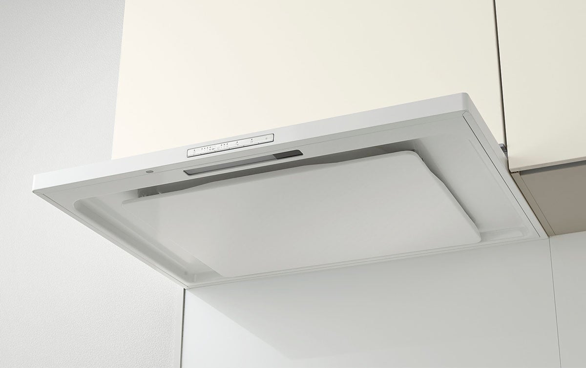 10年間、ファンとフード内部のお手入れ不要※のレンジフード。「よごれんフード」は、オイルスマッシャー機構を採用しており、油の浸入をブロックファンやフード内部には油汚れがほとんどたまらないので、フード内部の面倒なお掃除から解放してくれ、簡単なお手入れだけで長く快適に使えます。