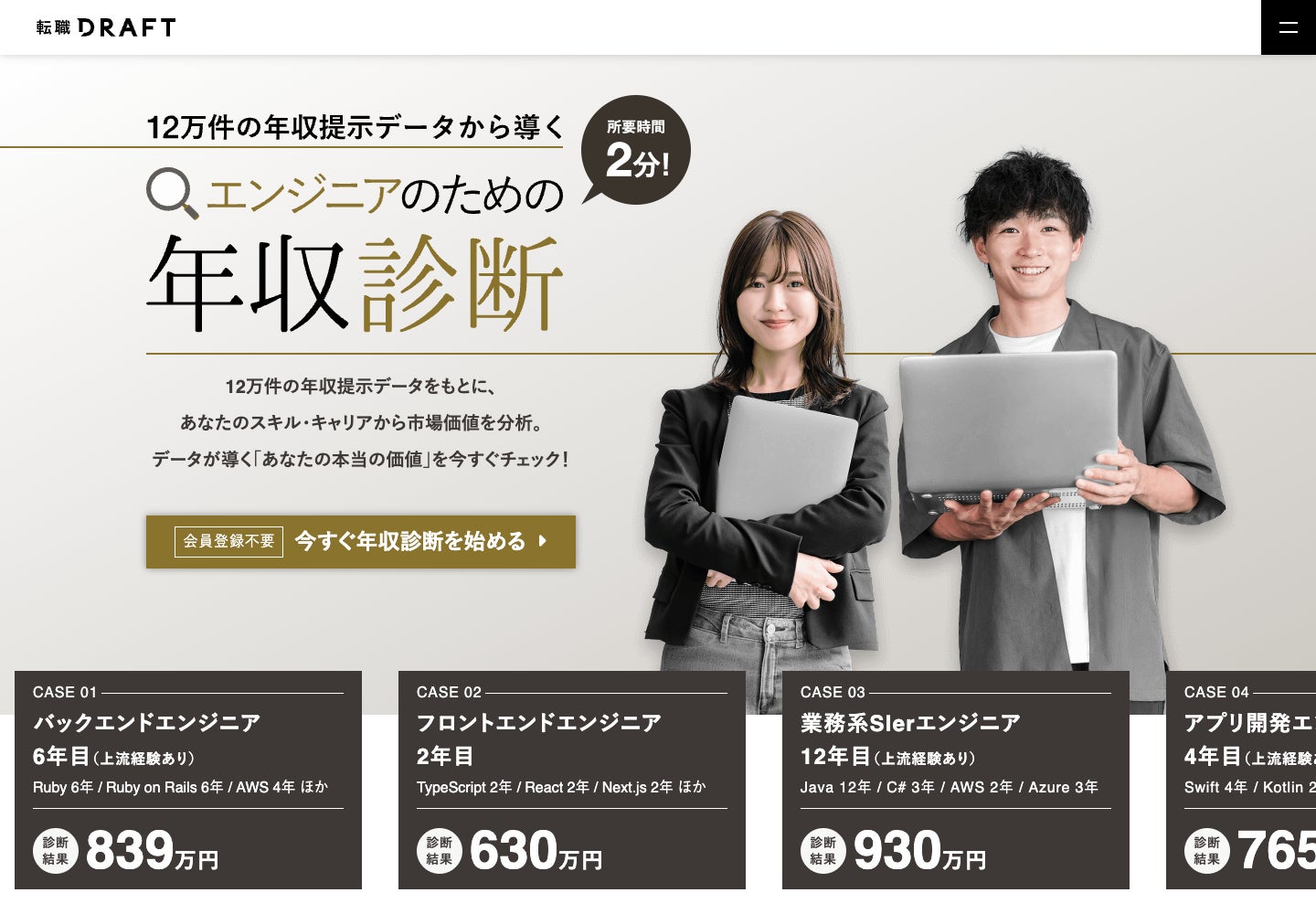 転職ドラフト、ITエンジニアのリアルな市場価値がわかる『年収診断』機能を提供開始