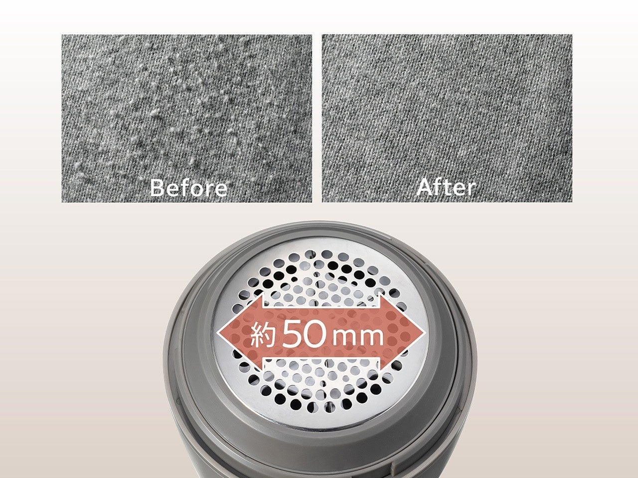 ・約50㎜の大型メッシュで毛玉をしっかりカット。手軽にサッとお手入れできて大切な衣服を長く保つ。