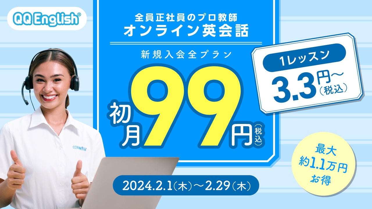 QQEnglishでは、みなさまの英語学習を応援するために新規入会 全プラン初月99円キャンペーンを開催します!
