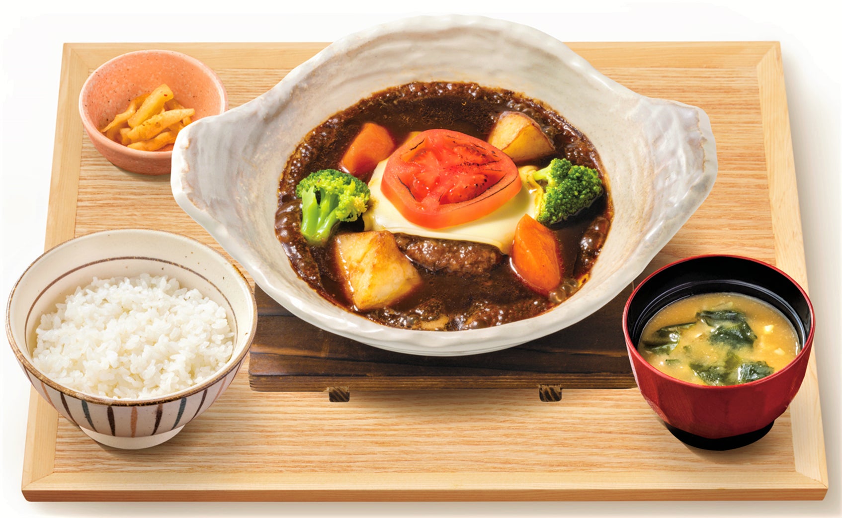 土鍋で熱々!濃厚なソースがたまらない「デミグラスハンバーグ土鍋煮込み定食」が期間限定で復刻販売!