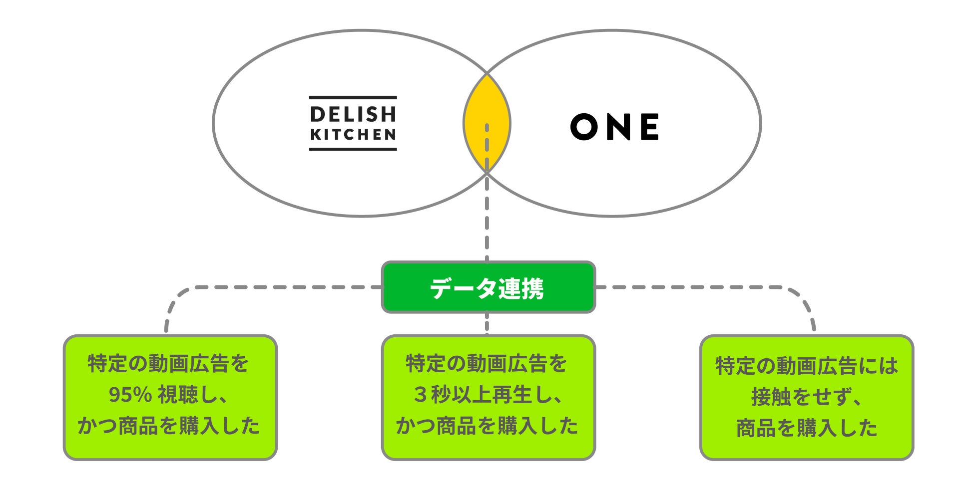 株式会社エブリー(本社:東京都港区、代表取締役:吉田 大成)が運営する食領域の1to1マーケティングプラットフォーム『DELISH KITCHEN CONNECT』は、WED株式会社(本社:東京都渋谷区、代表取締役CEO:山内 奏人)が運営するレシート購買アプリ『ONE』と提携を開始いたします。レシピ動画の視聴データと購買データを掛け合わせることにより、動画広告の視聴有無に応じた購買効果検証ができるサービスを提供してまいります。