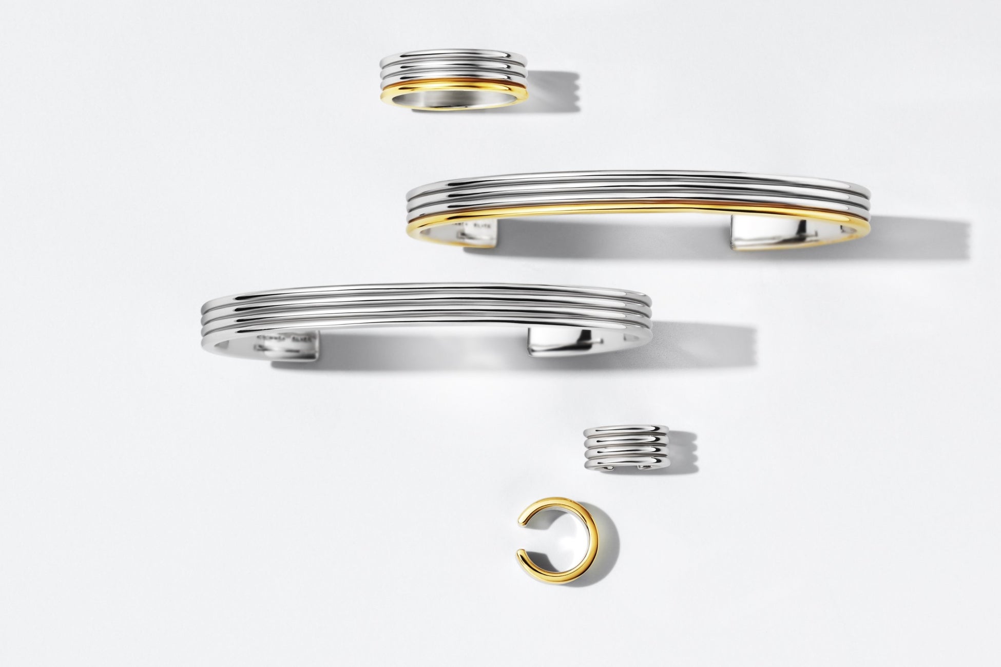 今回、「4℃ HOMME+」から、新作「Coil Collection」が登場。水平線のように均整の取れた地金をコイル状に重ね、シャープな印象に仕上げたコレクションです。洗練されたジオメトリックなフォルムに、ひとひねりのアクセントが光ります。
