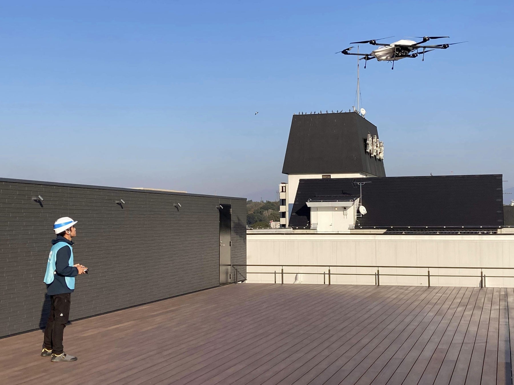 (画像:あゆの里の屋上を離陸する物流専用ドローンAirTruck)